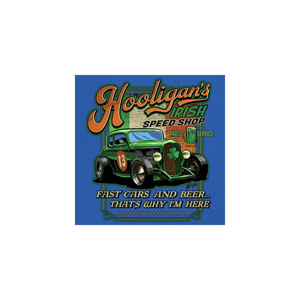 Celebrate St. Patrick's Day in style with the Hooligan Speed Shop T-Shirt, featuring a bold design of the Irish flag perfect for showcasing your pride while adding flair to any festive occasion.