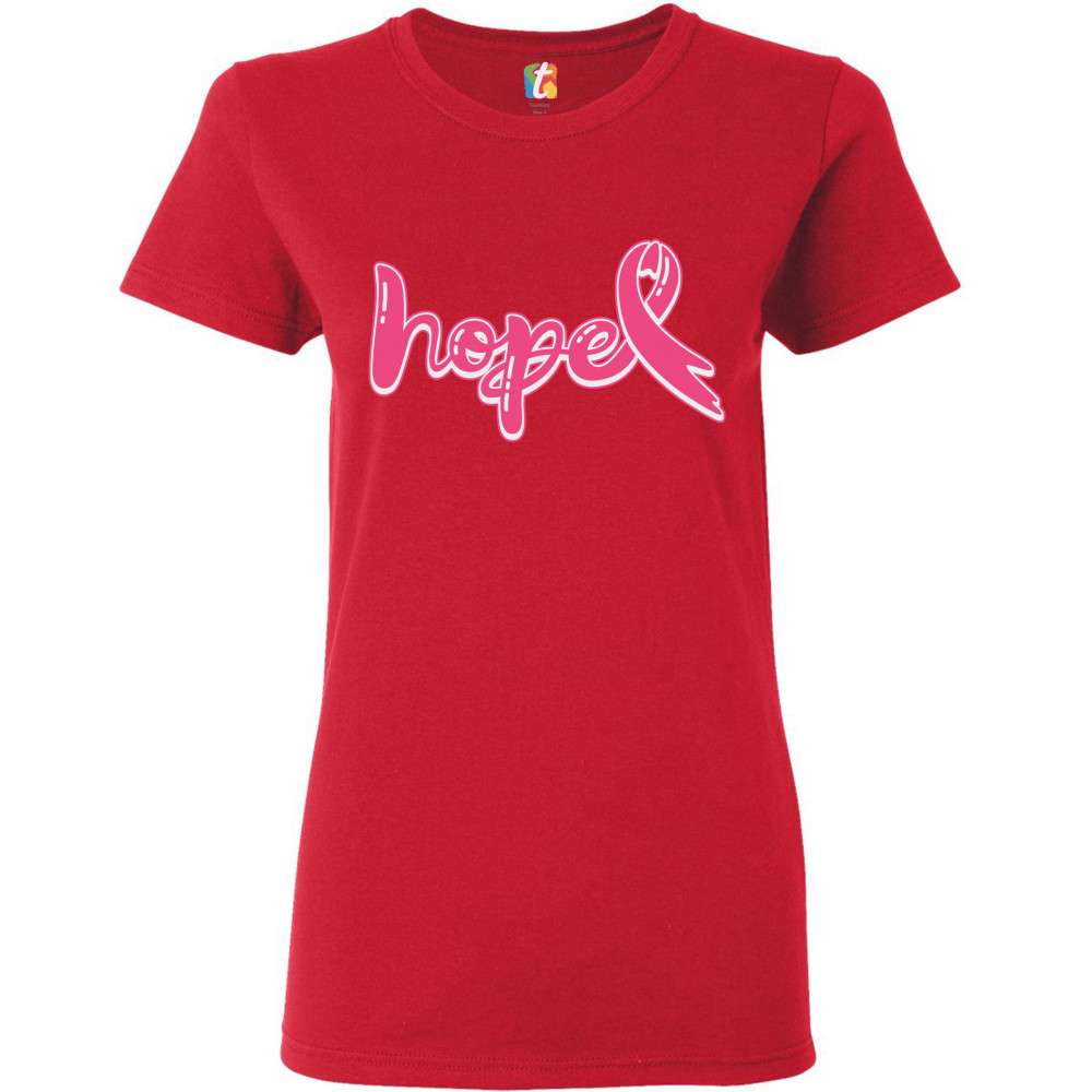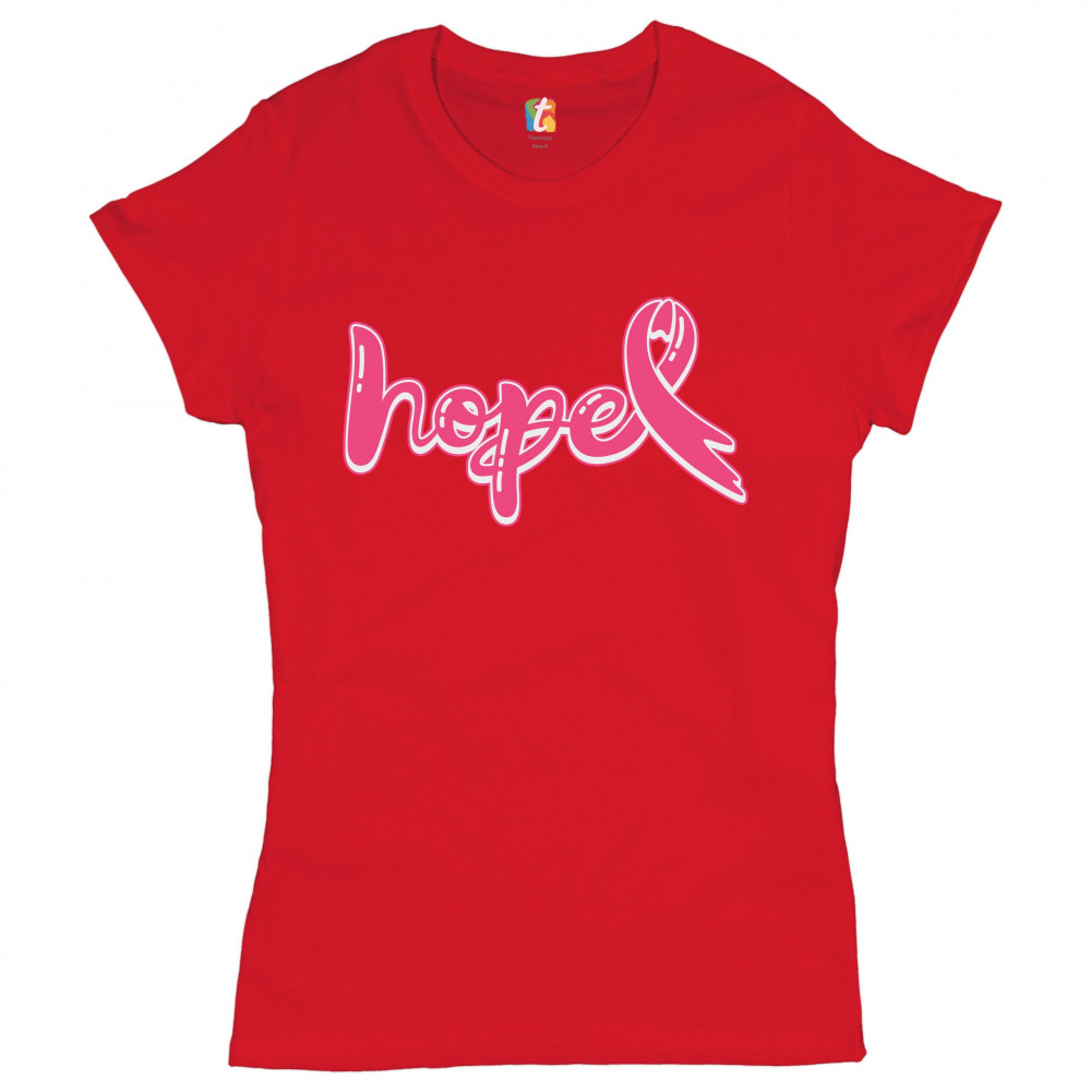 HOPE PINK RIBBON t-shrit breast cancer awareness month women's tee red