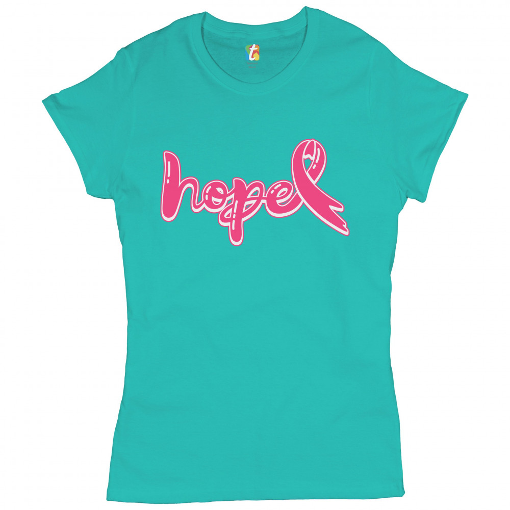 HOPE PINK RIBBON t-shrit breast cancer awareness month women's tee light blue