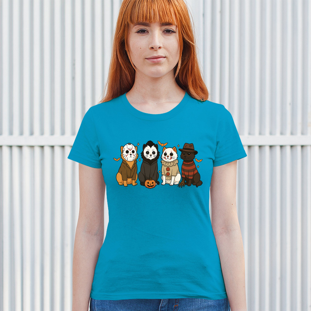 Get into the Halloween spirit with this Horror Cats Halloween design featuring spooky felines in creepy costumes. From Jack o Lantern details to Haunted House energy, it’s perfect for celebrating October 31 with festive style. A playful blend of Halloween vibes, autumn night chills, and witch-inspired magic, this design makes a great Halloween outfit for cat lovers and spooky fans alike.
