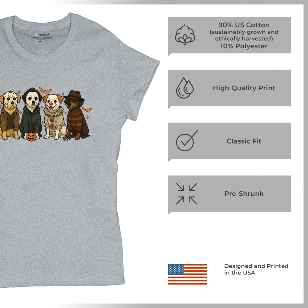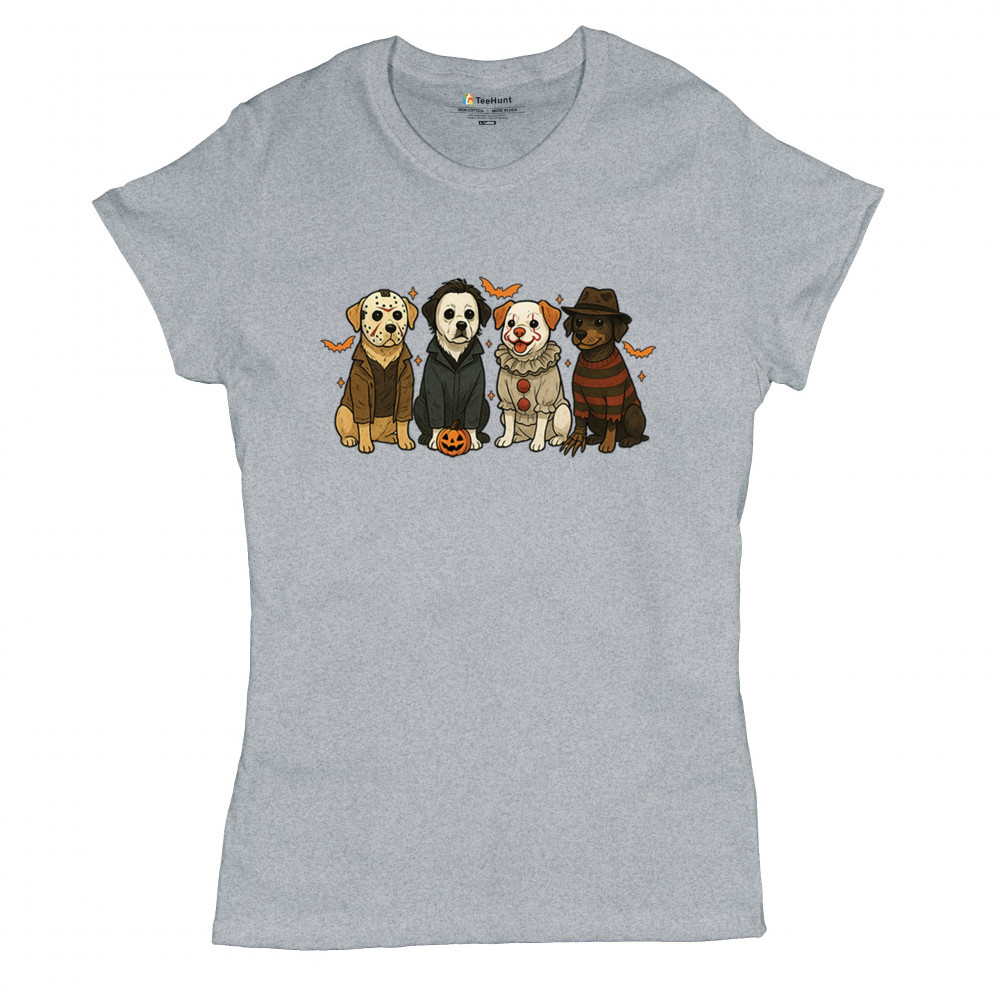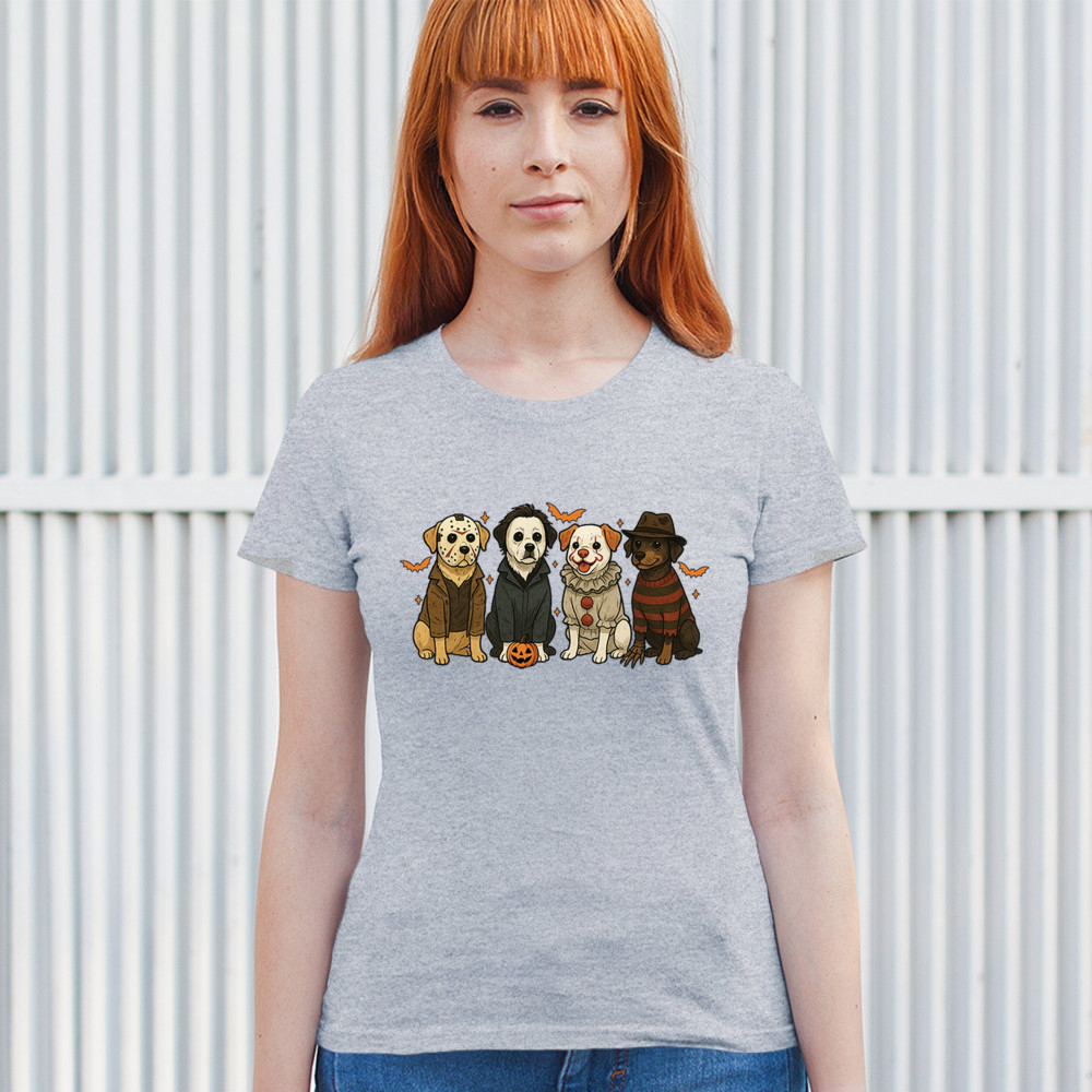 Celebrate Halloween with the Horror Dogs design featuring pups in creepy costumes inspired by spooky icons. A perfect pick for October 31 haunted house visits, autumn nights, or parties full of Halloween vibes. Whether you love dogs, witches, or pumpkin head fun, this festive design makes a playful addition to the spooky season.