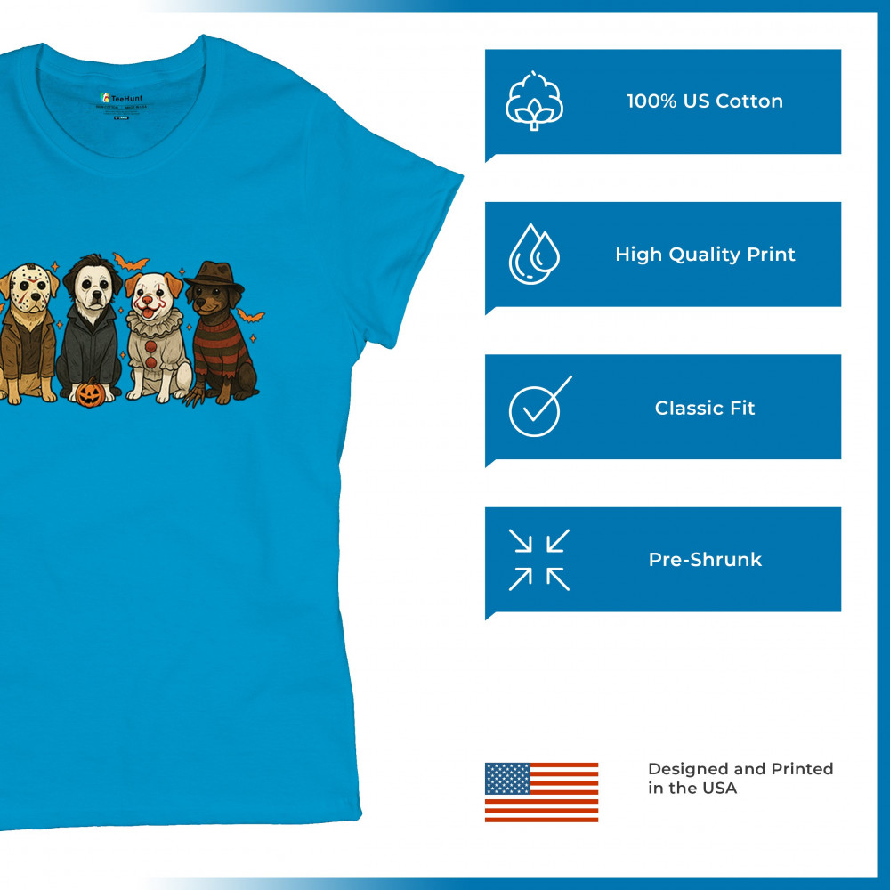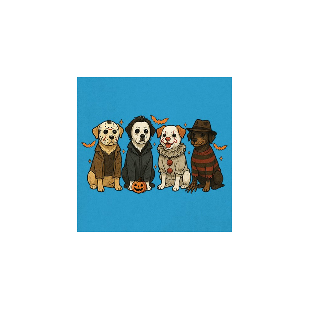 Celebrate Halloween with the Horror Dogs design featuring pups in creepy costumes inspired by spooky icons. A perfect pick for October 31 haunted house visits, autumn nights, or parties full of Halloween vibes. Whether you love dogs, witches, or pumpkin head fun, this festive design makes a playful addition to the spooky season.
