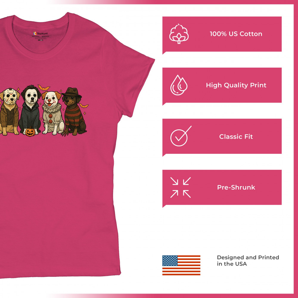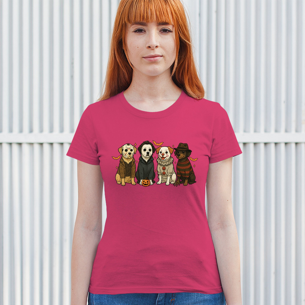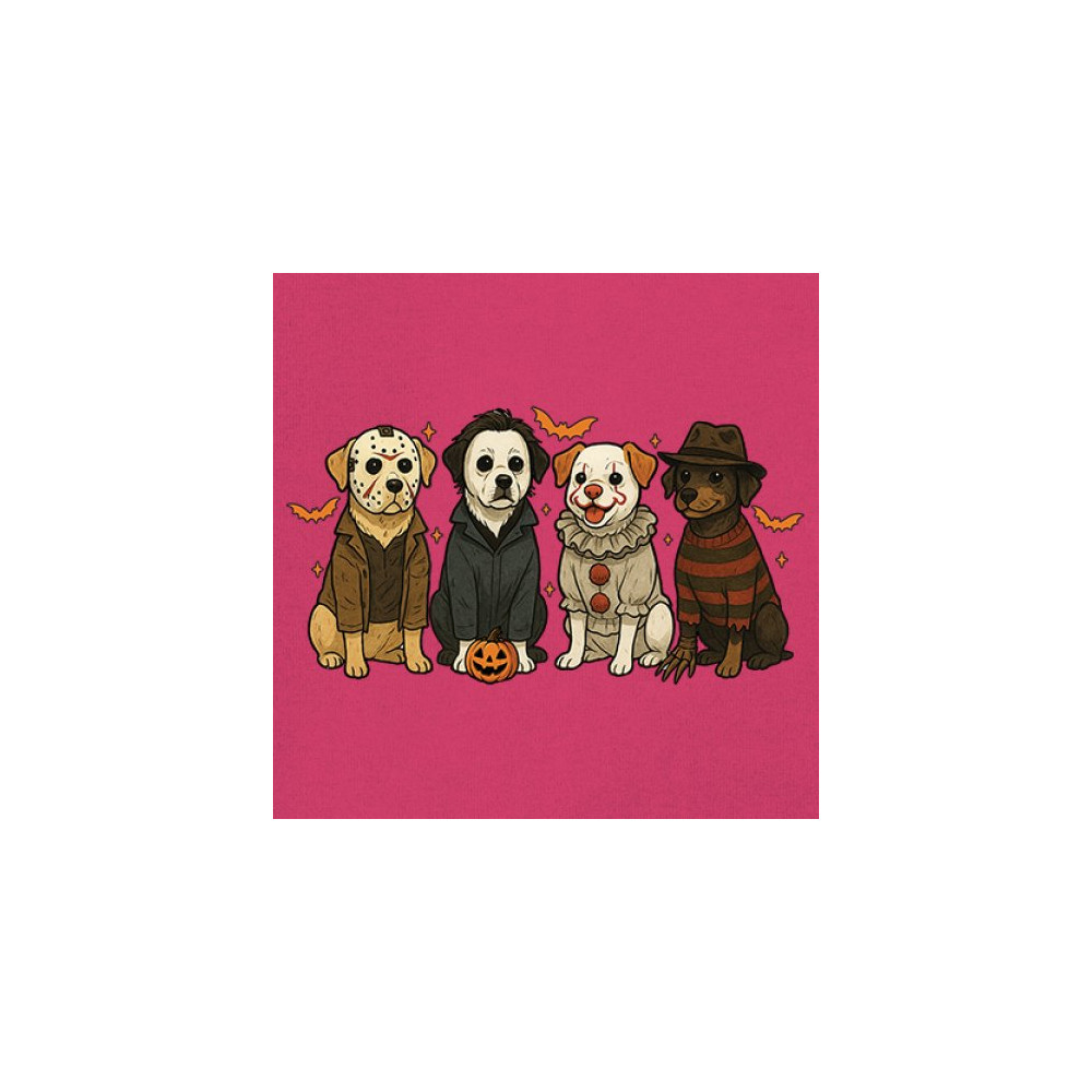 Celebrate Halloween with the Horror Dogs design featuring pups in creepy costumes inspired by spooky icons. A perfect pick for October 31 haunted house visits, autumn nights, or parties full of Halloween vibes. Whether you love dogs, witches, or pumpkin head fun, this festive design makes a playful addition to the spooky season.
