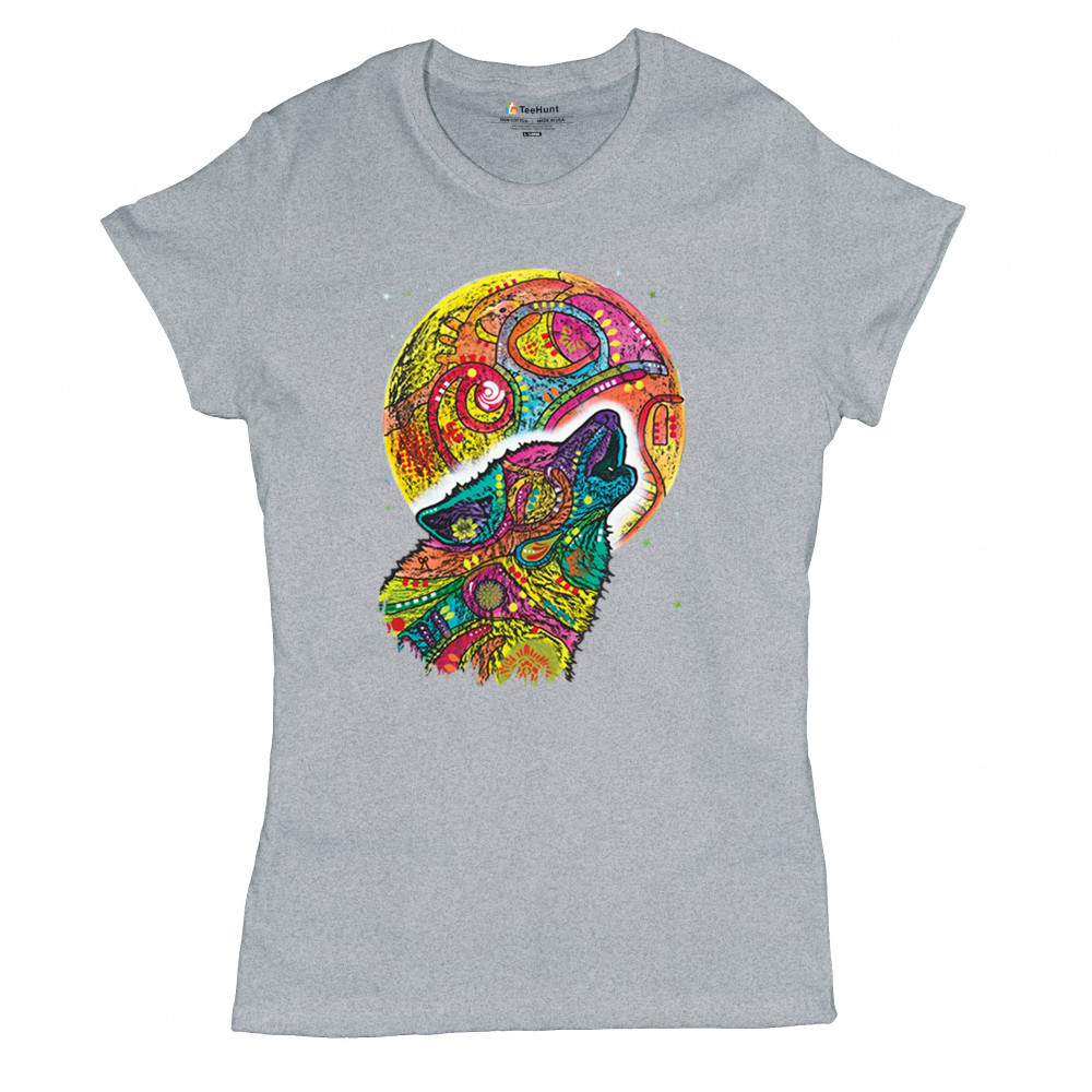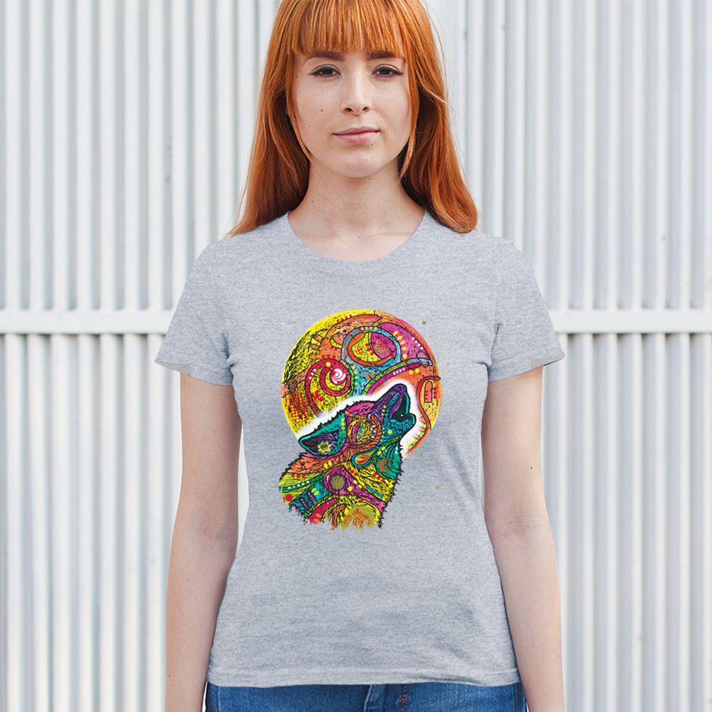 HOWLING WOLF AND MOON t-shirt dean russo colorful wild life women's tee gray