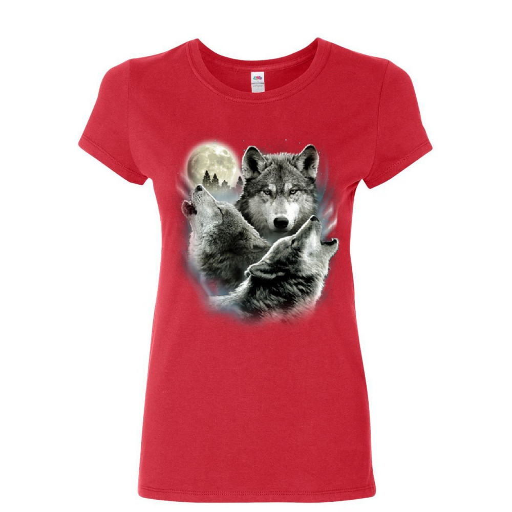 WOLF PACK HOWLING UP TO THE MOON howling wolf pack women's t-shirt wild wilderness animals nature moon shirt red