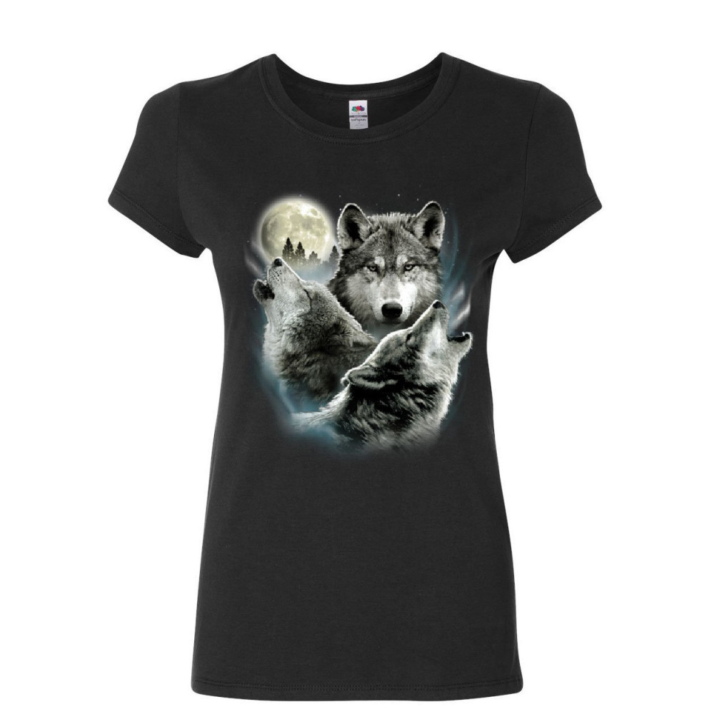 WOLF PACK HOWLING UP TO THE MOON howling wolf pack women's t-shirt wild wilderness animals nature moon shirt black