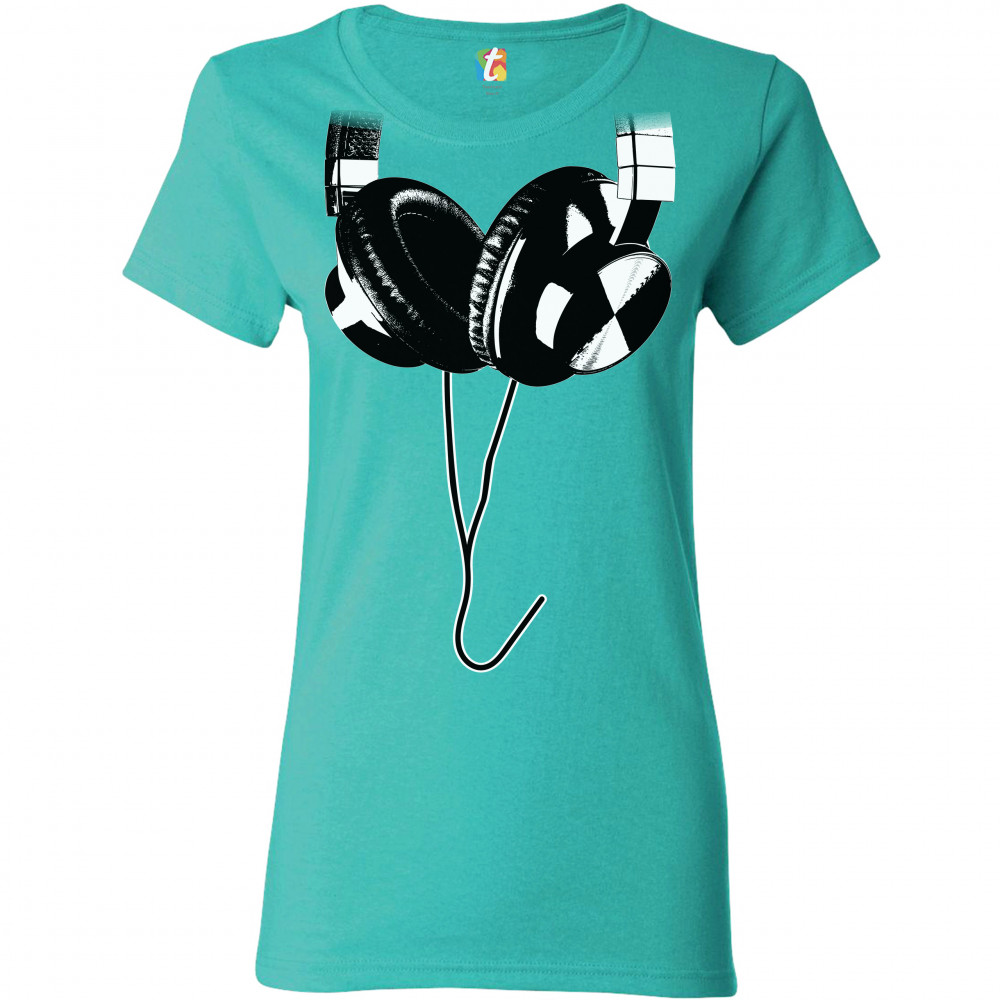 HUGE HANGING HEADPHONES t-shrit dj music women's tee light blue