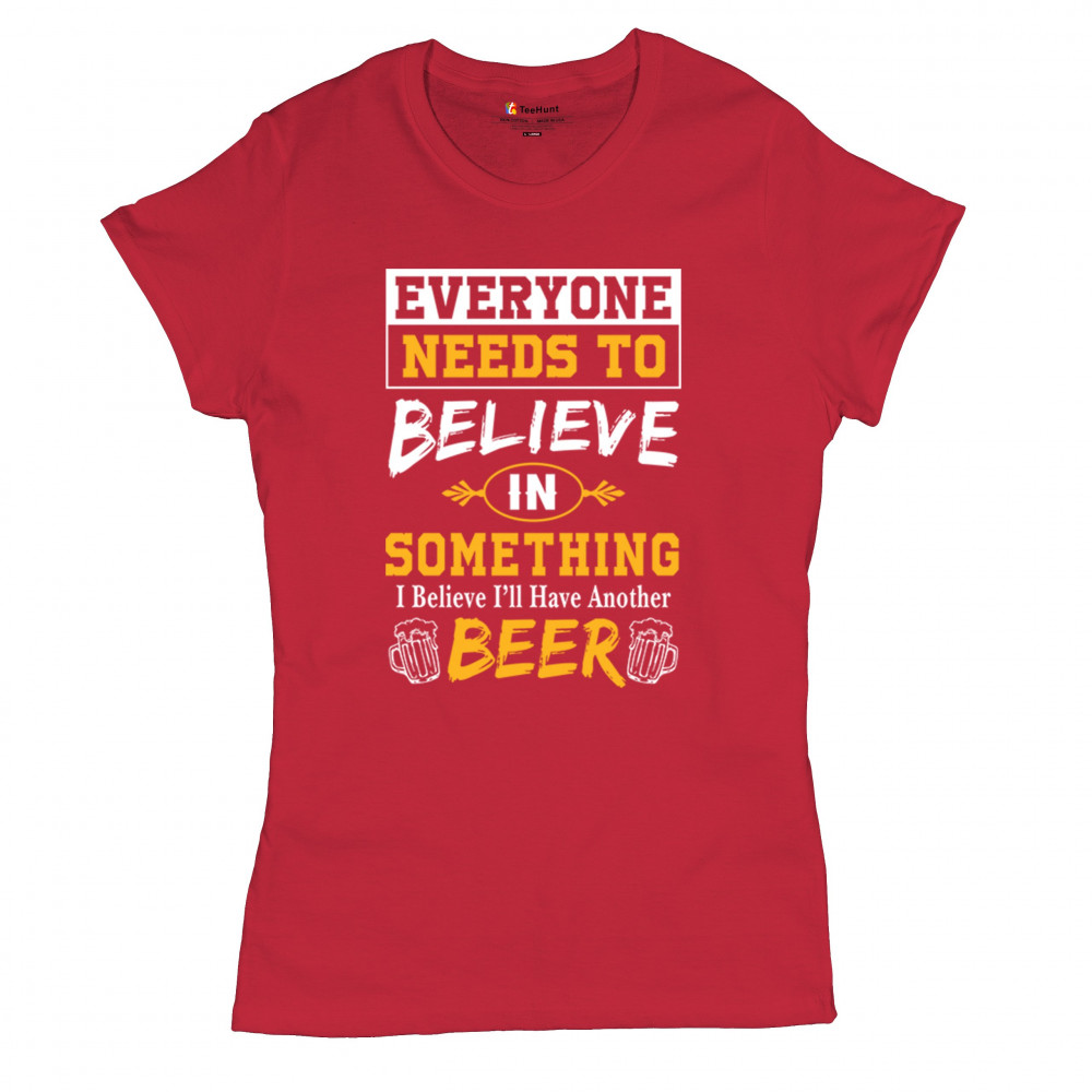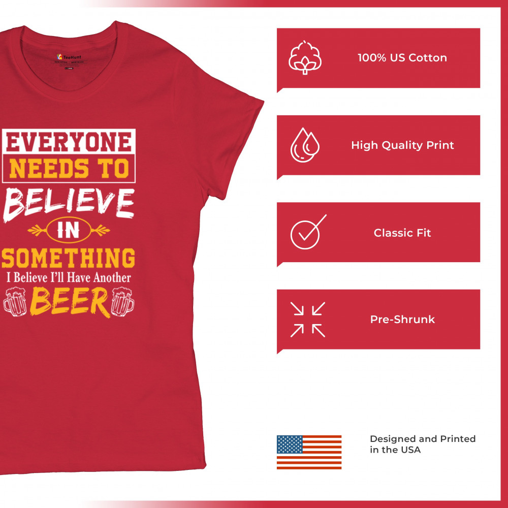 Celebrate your love for beer with the witty "Everyone Needs to Believe in Something, I Believe I'll Have Another Beer" design. Perfect for beer lovers and casual outings.