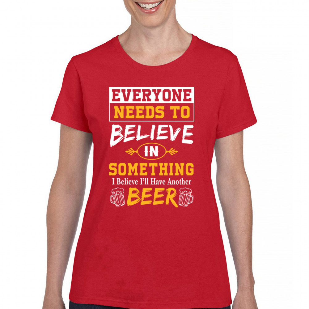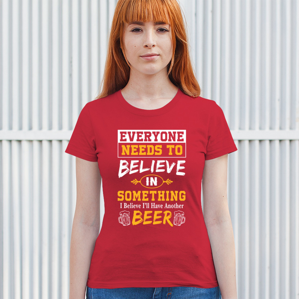 Add some humor to your wardrobe with our "Everyone Needs to Believe in Something, I Believe I'll Have Another Beer" design. Featuring a witty slogan and beer-themed graphics, this design is perfect for casual outings, beer festivals, and social gatherings. Ideal for beer lovers and anyone who enjoys a good laugh, it makes a fantastic gift for friends and family. Celebrate your love for beer and good times with this fun and playful design!