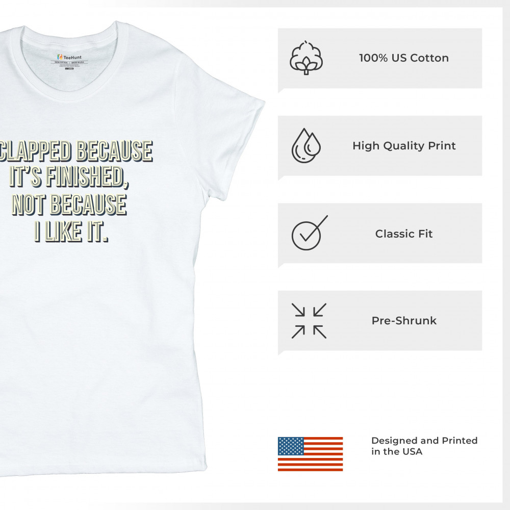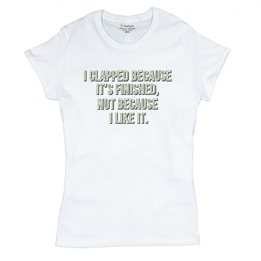 I CLAPPED BECAUSE IT'S FINISHED NOT BECAUSE I LIKE IT t-shirt funny women's tee white