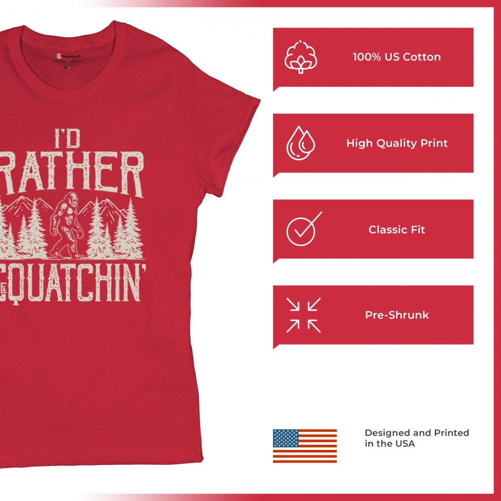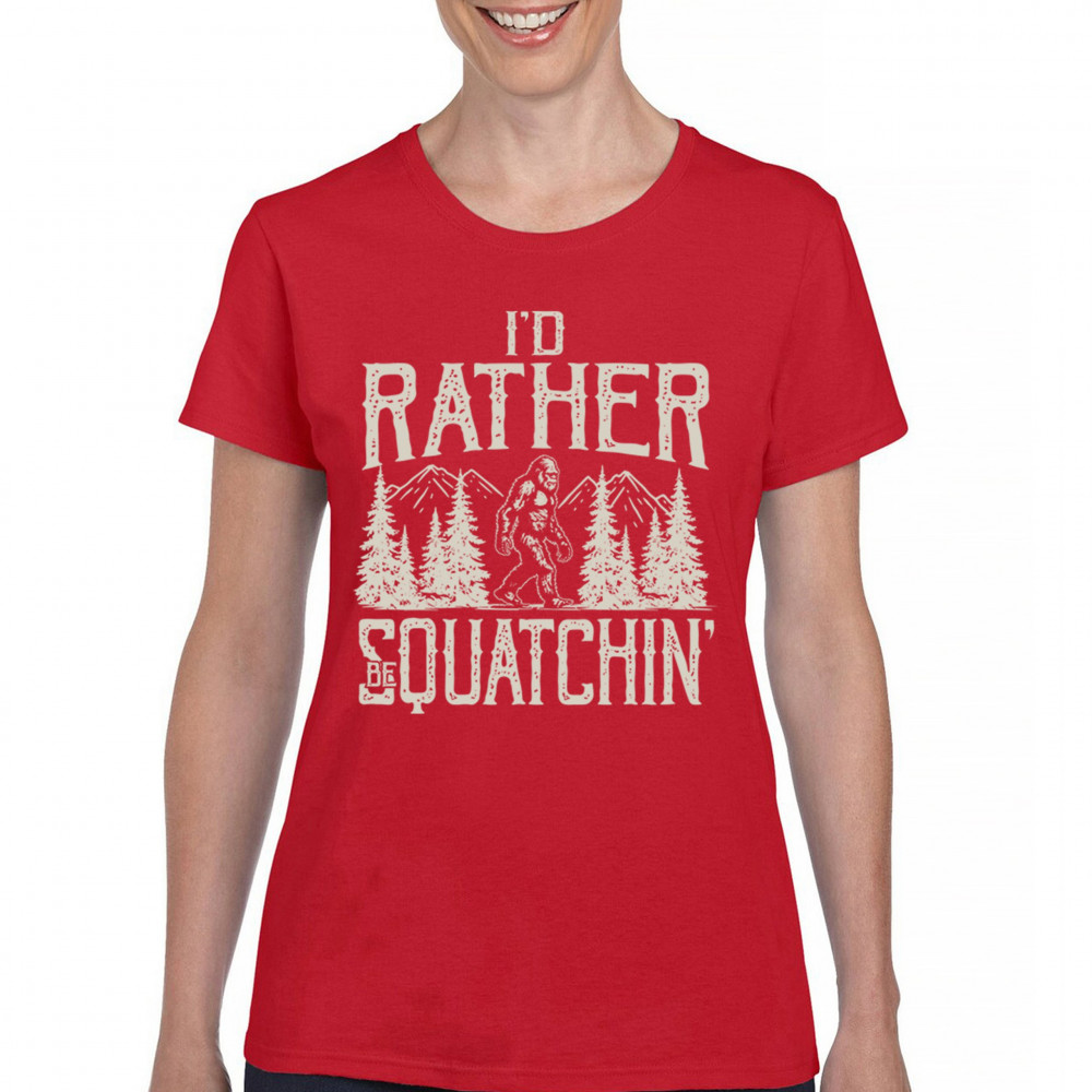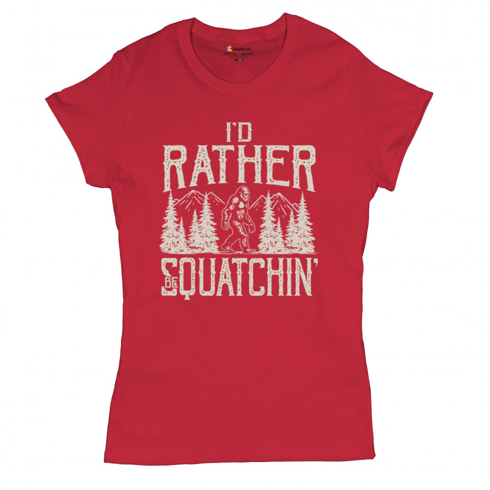 "I’d Rather Be Squatchin’" – A bold design for Bigfoot fans and outdoor adventurers, featuring Sasquatch in a wilderness setting. Perfect for hikers and cryptid enthusiasts!