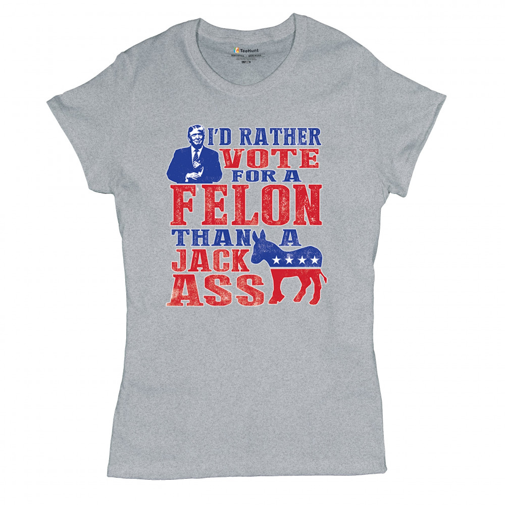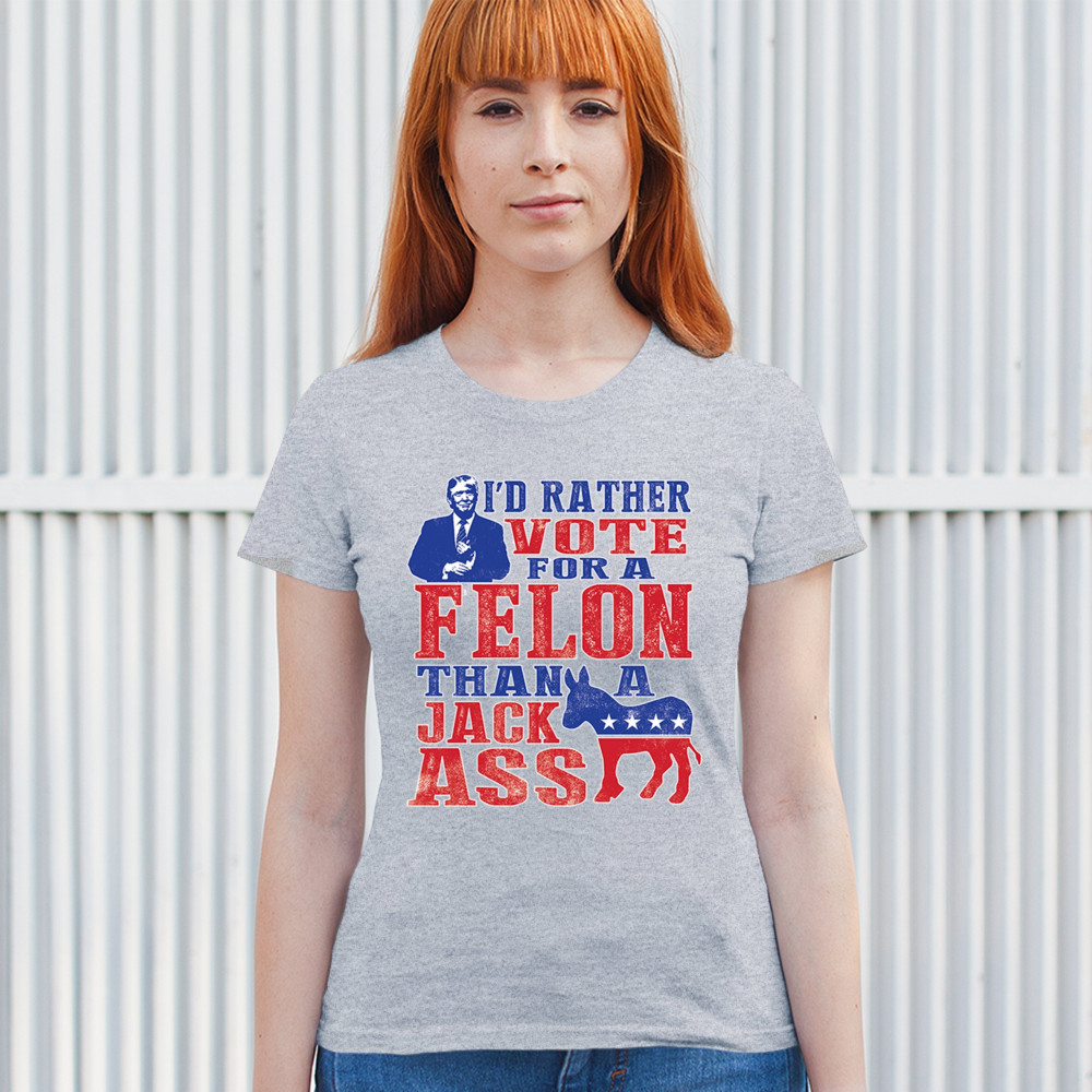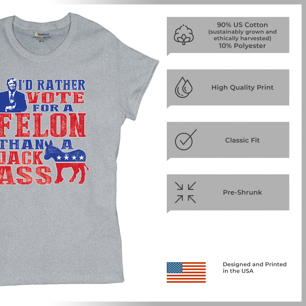 Boldly express your support with the "I'd Rather Vote For A Felon Than A Jackass" design. Perfect for rallies, it showcases loyalty to Trump and JD Vance.