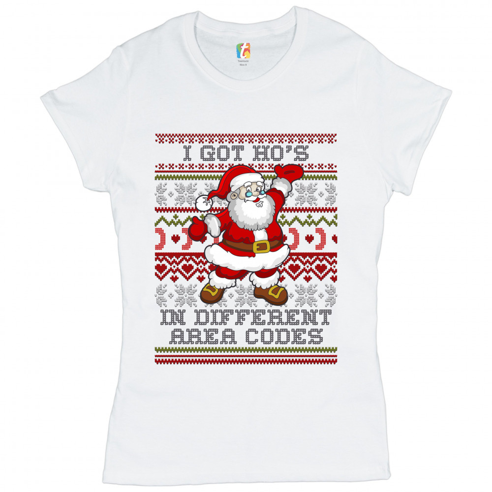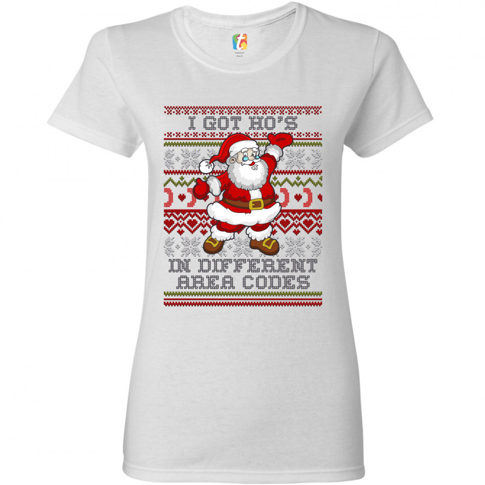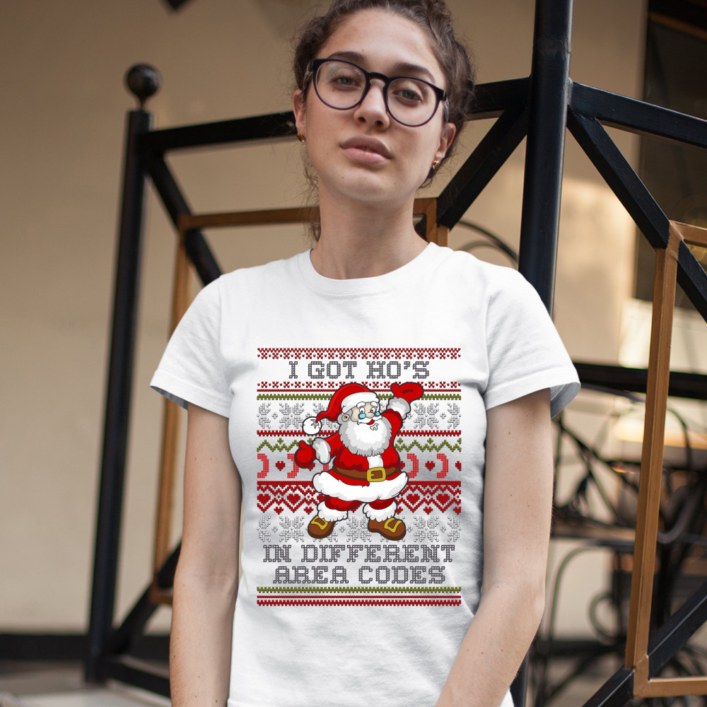 I GOT HO'S IN DIFFERENT AREA CODES t-shirt santa claus ugly sweater women's tee white