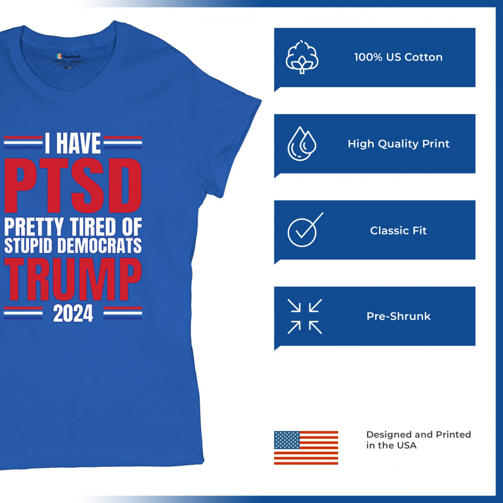 Stand up against the political chaos with "I have PTSD Pretty Tired of Democrats, Trump 2024" tee. As a dedicated supporter of conservative values, join the Trump Train to victory. Trust in God, not government, and reject the traitors to our nation. Let the American flag symbolize our resilience as we fight for President Trump and the future of America.