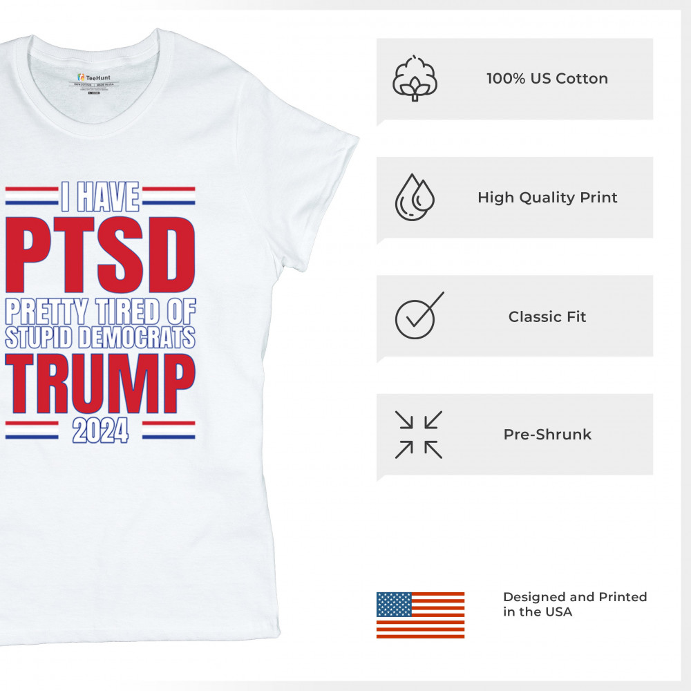 Stand up against the political chaos with "I have PTSD Pretty Tired of Democrats, Trump 2024" tee. As a dedicated supporter of conservative values, join the Trump Train to victory. Trust in God, not government, and reject the traitors to our nation. Let the American flag symbolize our resilience as we fight for President Trump and the future of America.