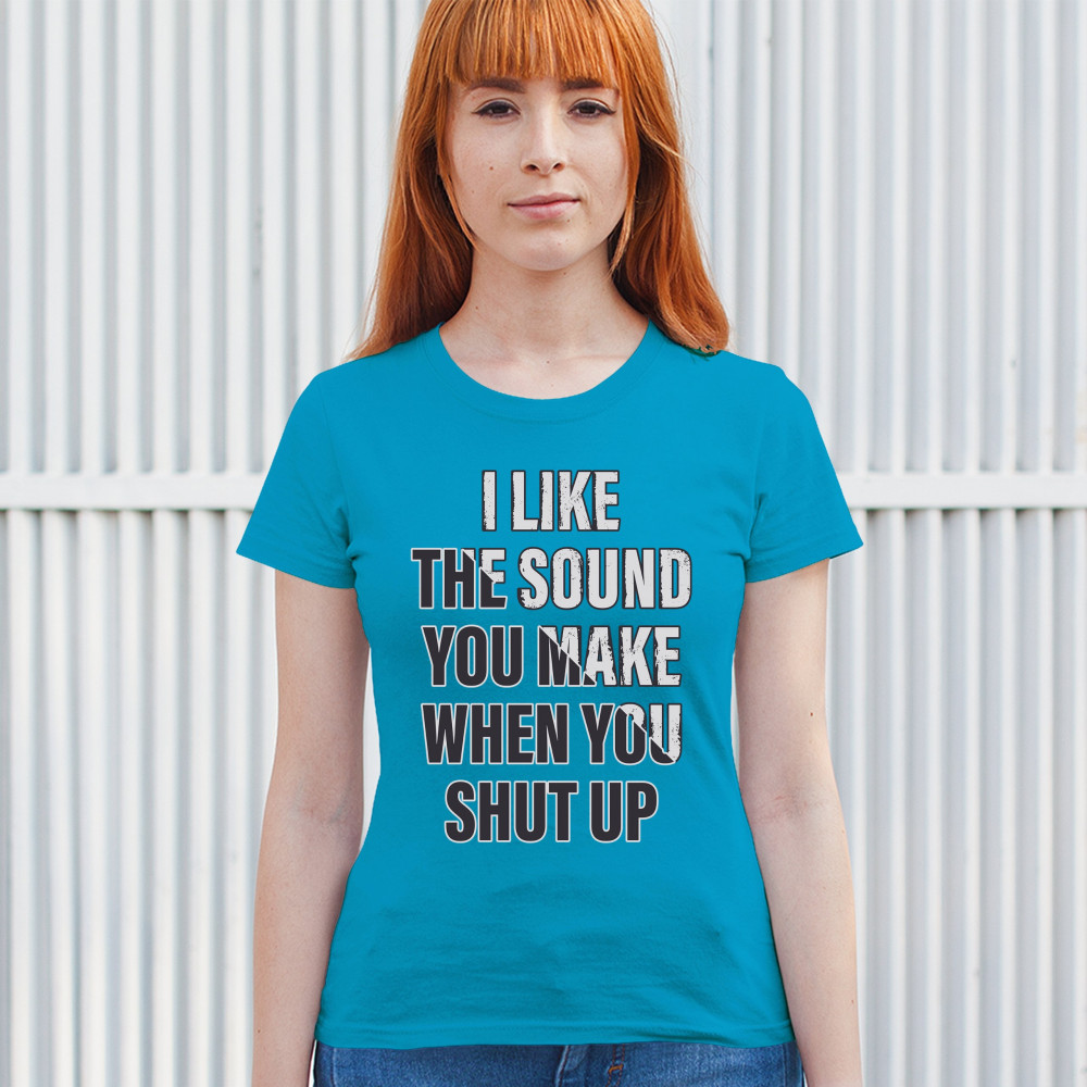 I LIKE THE SOUND YOU MAKE WHEN YOU SHUT UP t-shirt sarcastic women's tee light blue