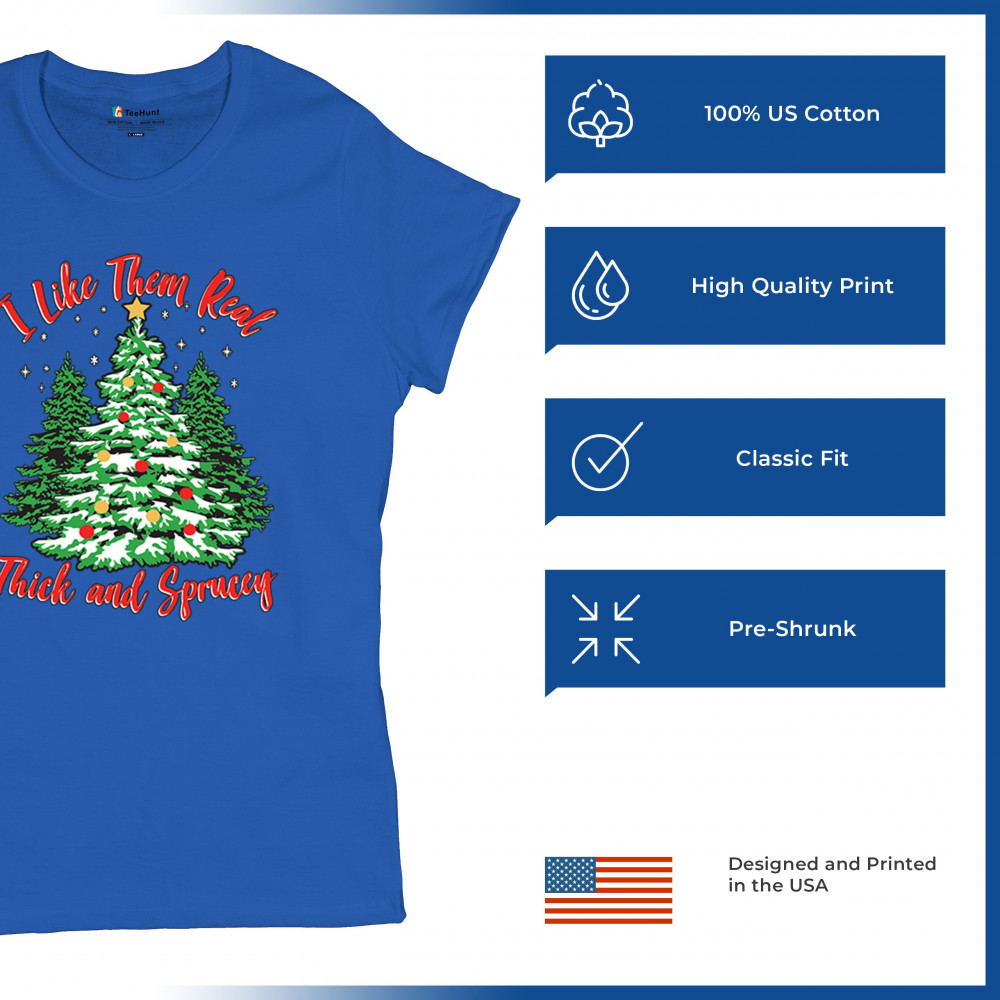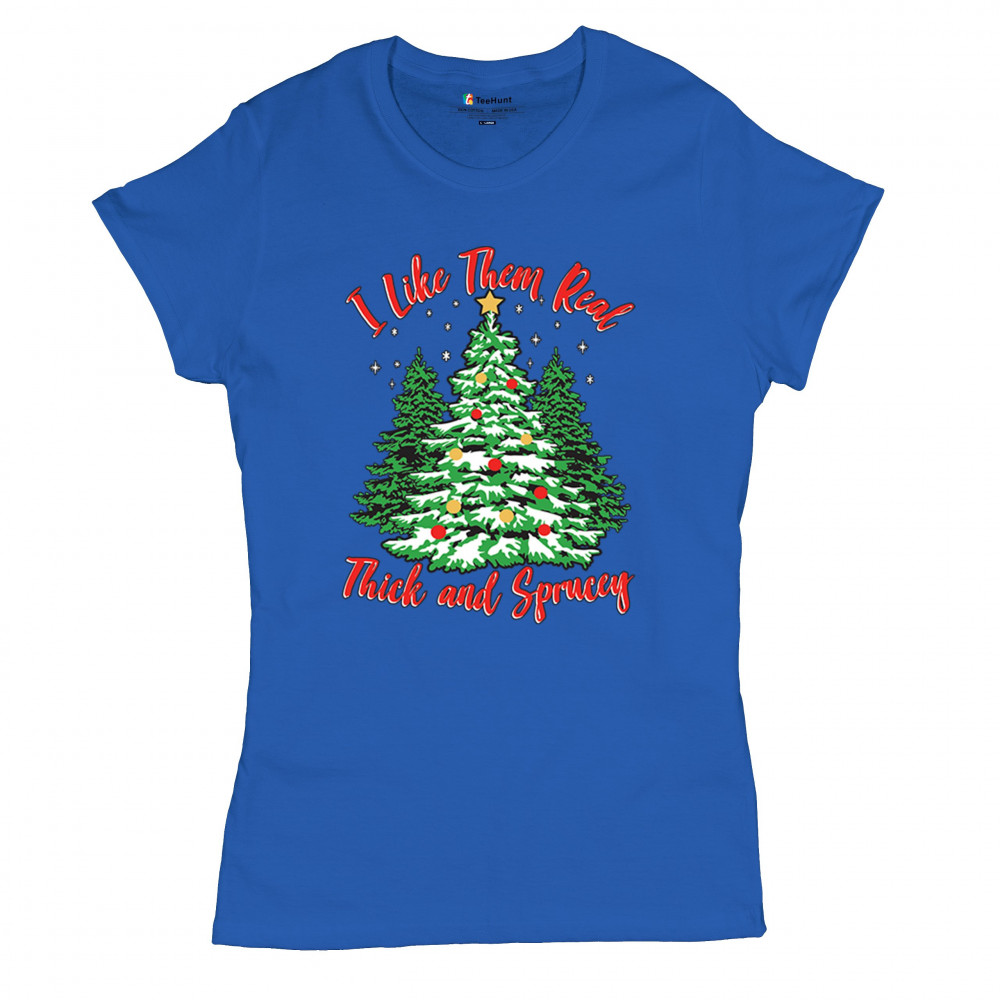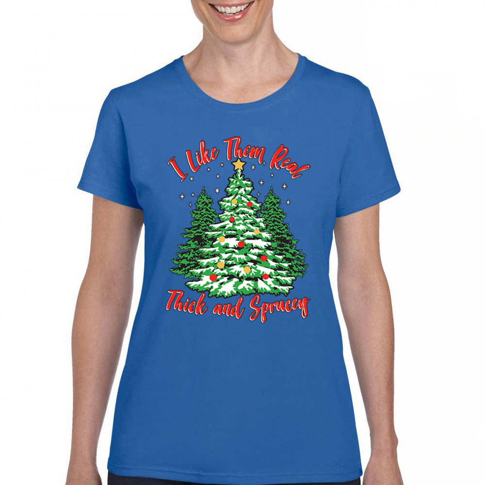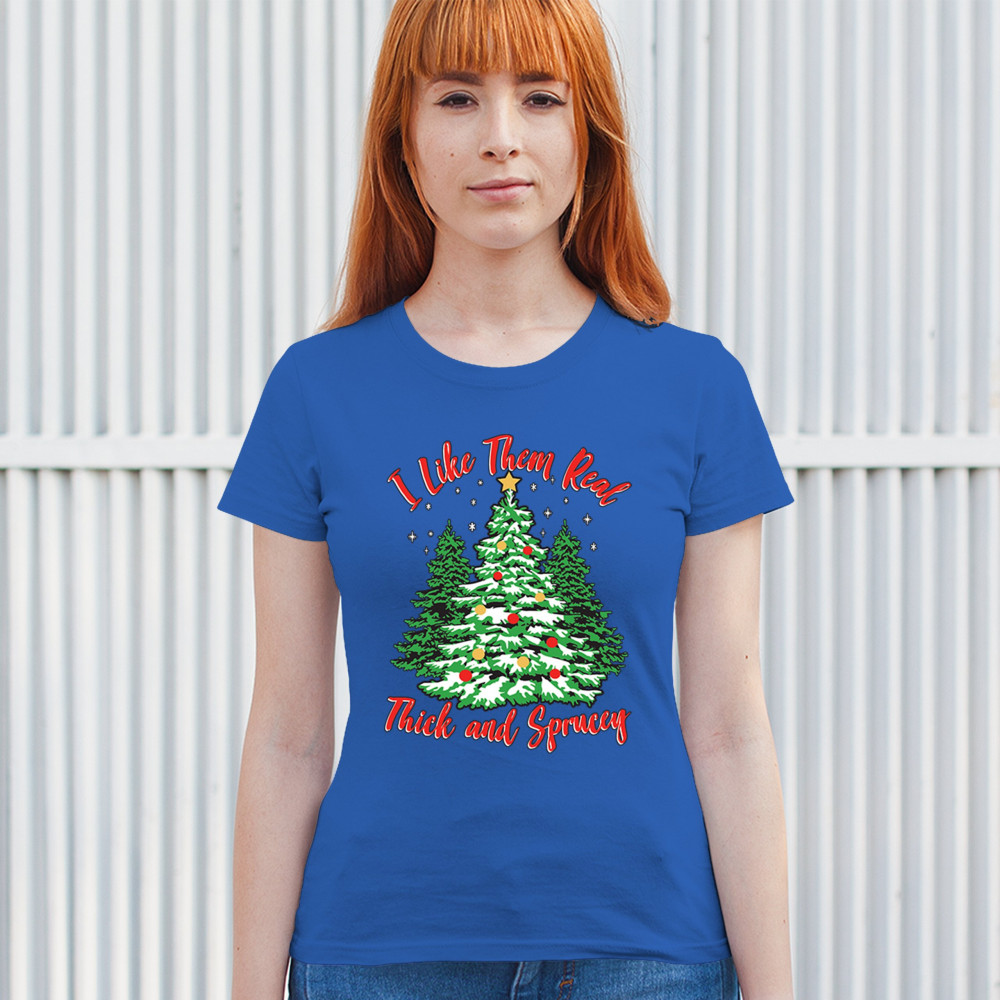 Enjoy the holiday season with our "I Like Them Real, Thick, and Sprucey" Christmas tree design, perfect for festive gatherings and holiday gifting!