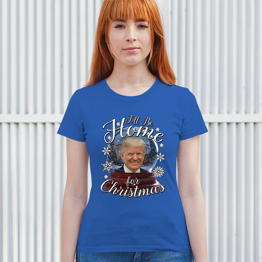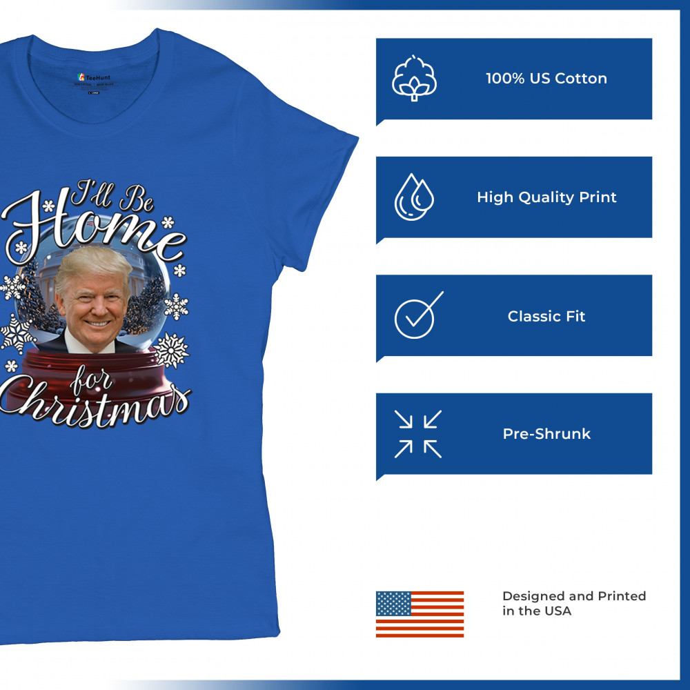 Get ready for the ultimate blend of holiday cheer and American pride with this "I'll Be Home for Christmas" design featuring Donald J. Trump in a festive snow globe. Perfect for gifts, holiday parties, or cozy mornings, this standout piece celebrates the season with style. Whether paired with matching pajamas or a cozy sweatshirt, it's a perfect way to add patriotic charm to your Feliz Navidad celebrations or office gatherings.