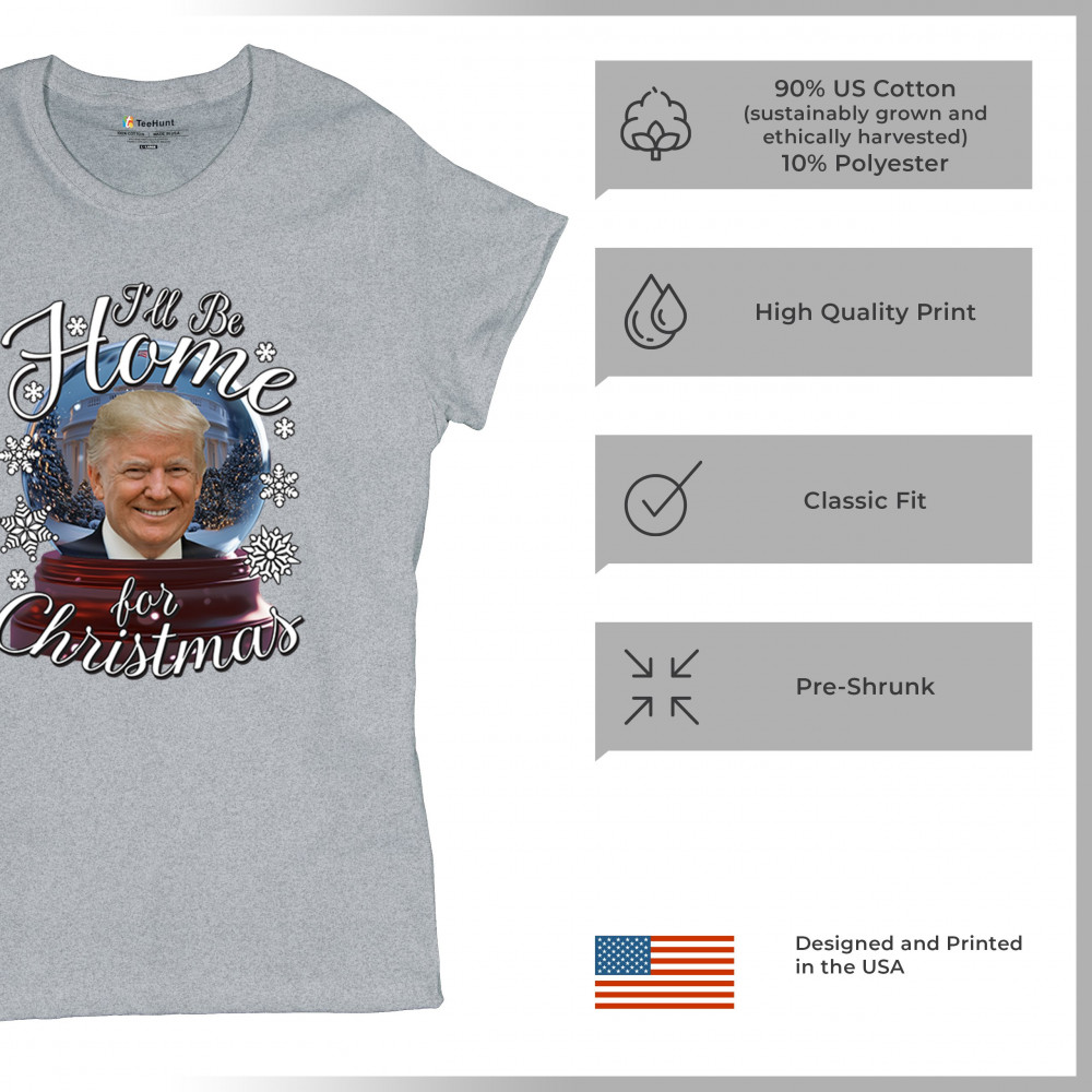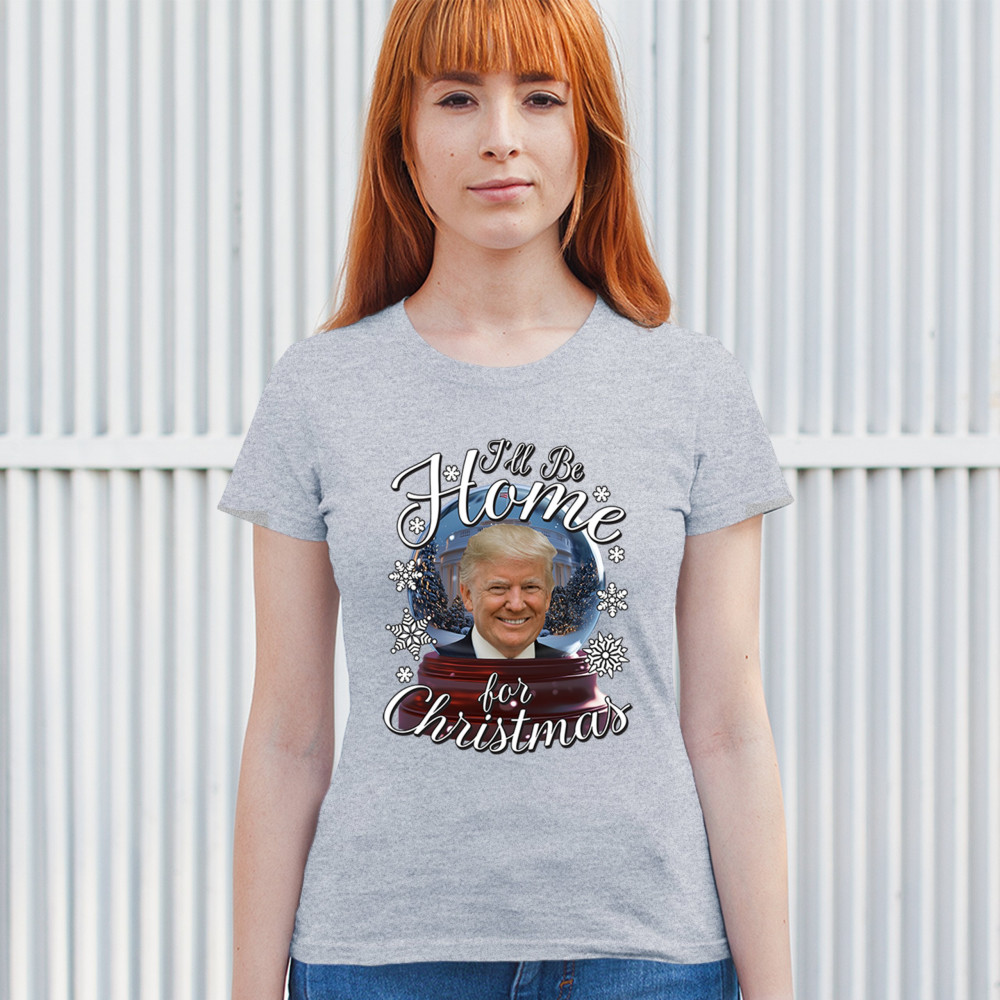 Get ready for the ultimate blend of holiday cheer and American pride with this "I'll Be Home for Christmas" design featuring Donald J. Trump in a festive snow globe. Perfect for gifts, holiday parties, or cozy mornings, this standout piece celebrates the season with style. Whether paired with matching pajamas or a cozy sweatshirt, it's a perfect way to add patriotic charm to your Feliz Navidad celebrations or office gatherings.