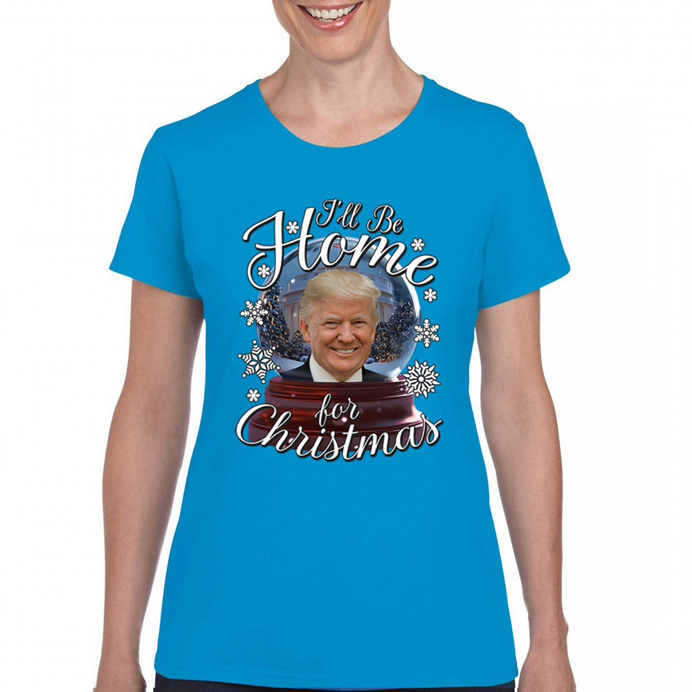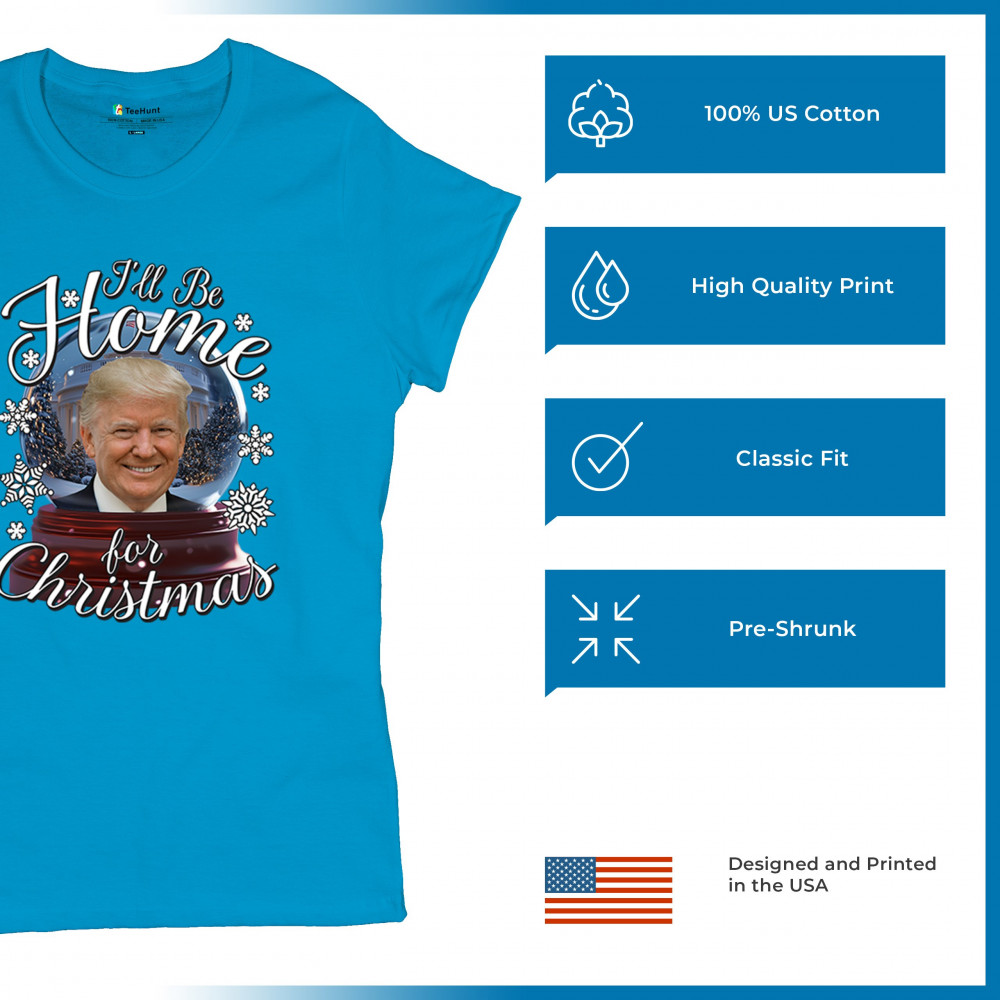Get ready for the ultimate blend of holiday cheer and American pride with this "I'll Be Home for Christmas" design featuring Donald J. Trump in a festive snow globe. Perfect for gifts, holiday parties, or cozy mornings, this standout piece celebrates the season with style. Whether paired with matching pajamas or a cozy sweatshirt, it's a perfect way to add patriotic charm to your Feliz Navidad celebrations or office gatherings.