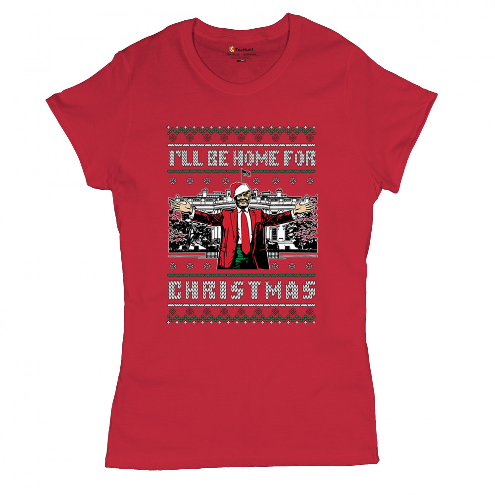Add humor and patriotism to your holidays with this festive Trump "I'll Be Home for Christmas" design—perfect for parties and unique gifts!