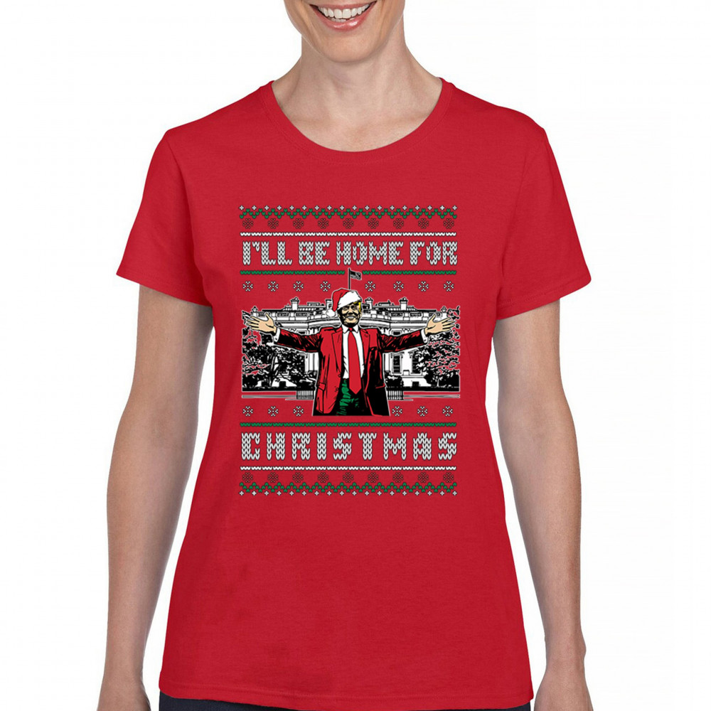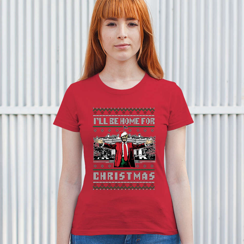 Get into the Christmas spirit with the "I'll Be Home for Christmas" design featuring Donald J. Trump in a festive holiday setting. Perfect for ugly sweater contests, holiday gatherings, and unique gifts for supporters, this humorous design adds a bold, patriotic touch to your seasonal celebrations. Whether for cozy mornings or office parties, it's a must-have for holiday cheer.