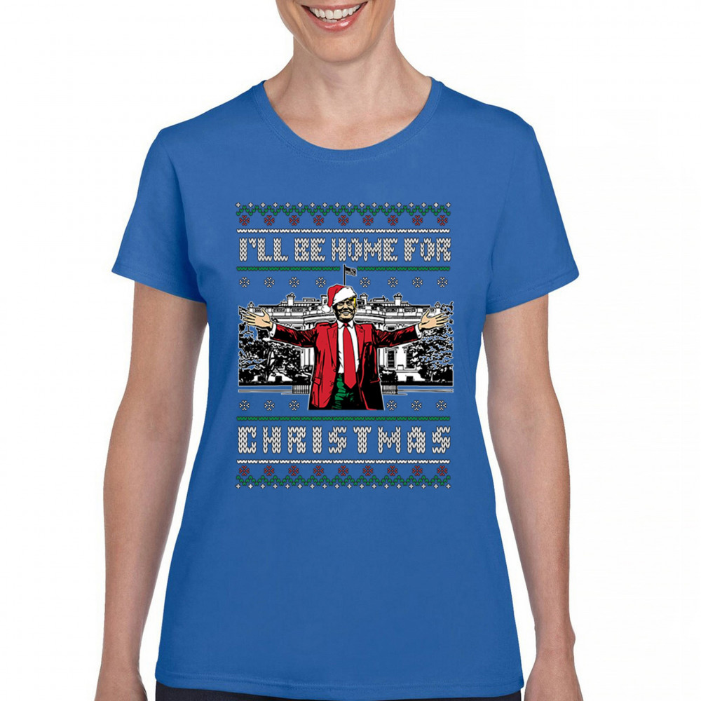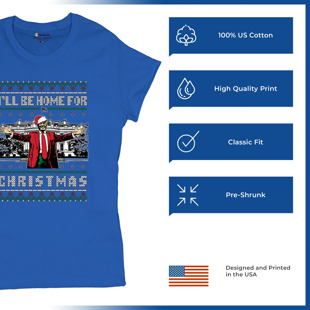 Get into the Christmas spirit with the "I'll Be Home for Christmas" design featuring Donald J. Trump in a festive holiday setting. Perfect for ugly sweater contests, holiday gatherings, and unique gifts for supporters, this humorous design adds a bold, patriotic touch to your seasonal celebrations. Whether for cozy mornings or office parties, it's a must-have for holiday cheer.