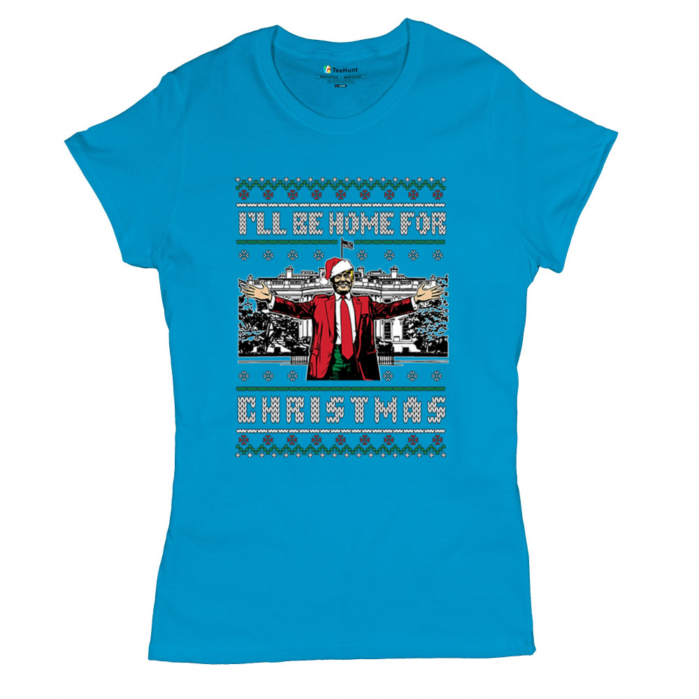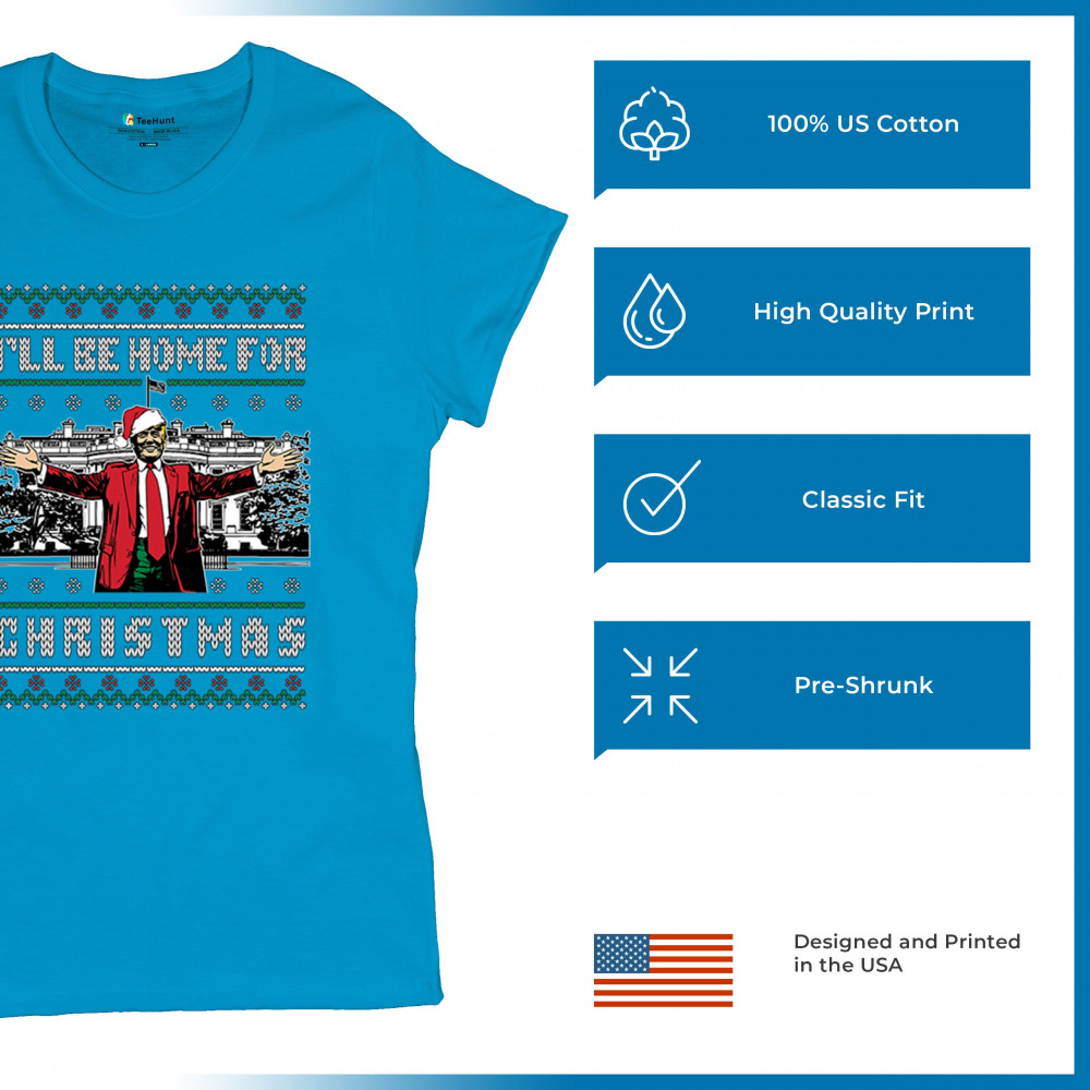 Add humor and patriotism to your holidays with this festive Trump "I'll Be Home for Christmas" design—perfect for parties and unique gifts!