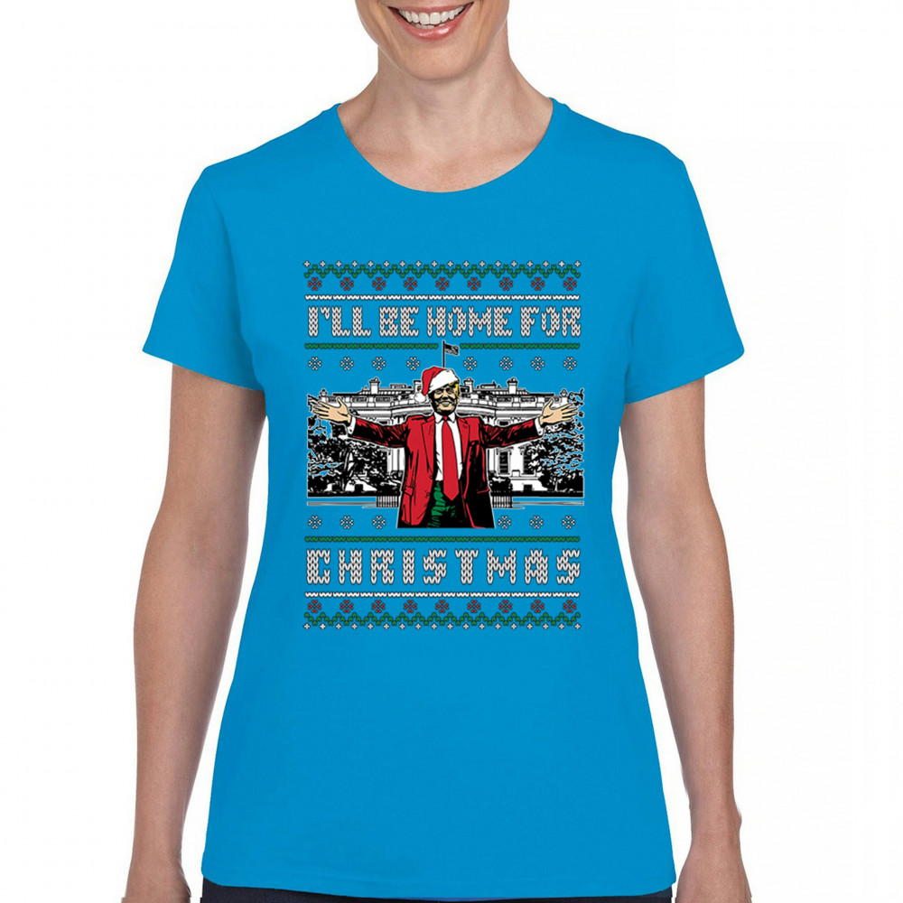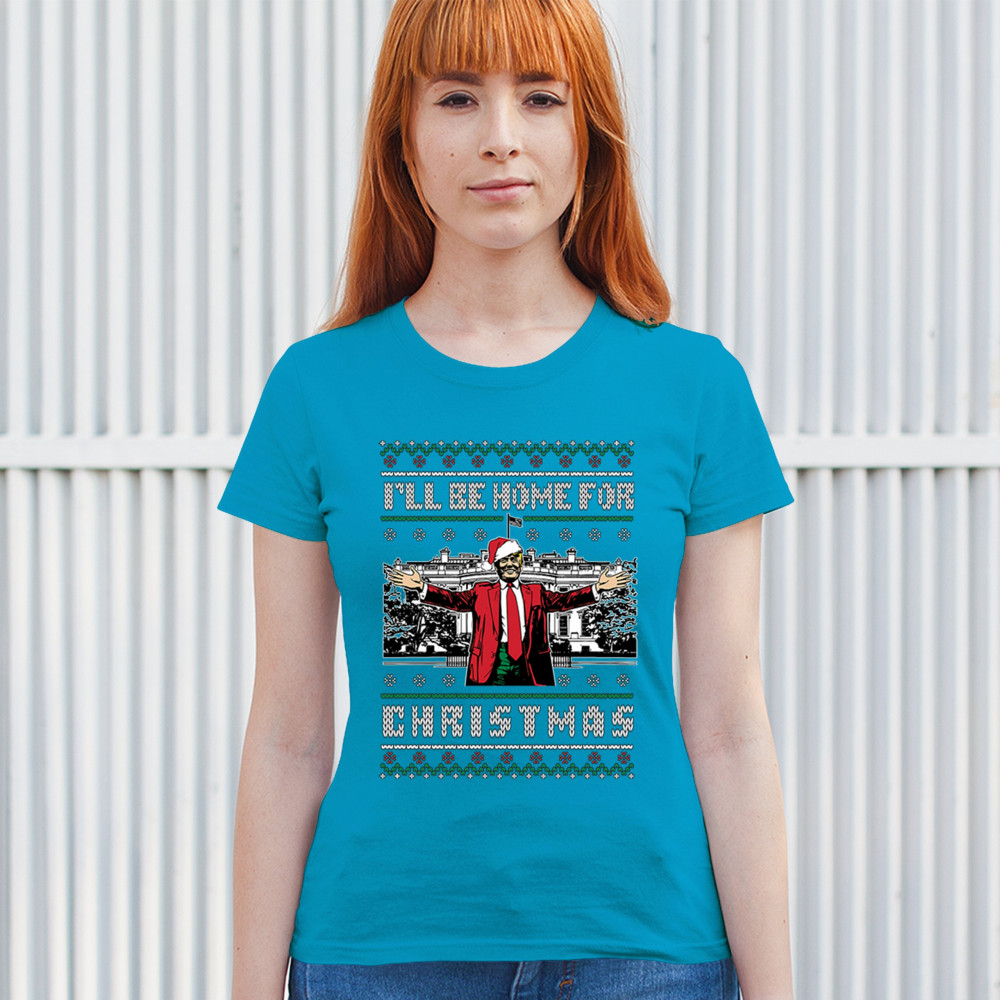 Get into the Christmas spirit with the "I'll Be Home for Christmas" design featuring Donald J. Trump in a festive holiday setting. Perfect for ugly sweater contests, holiday gatherings, and unique gifts for supporters, this humorous design adds a bold, patriotic touch to your seasonal celebrations. Whether for cozy mornings or office parties, it's a must-have for holiday cheer.