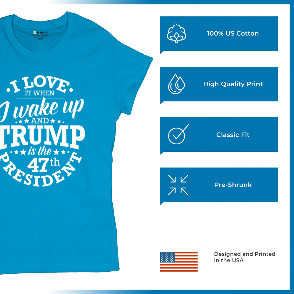 This "I Love It When I Wake Up and Trump is the 47th President" design is the ultimate expression of support for Donald J. Trump and his vision for America. Join the ranks of proud conservatives, Republicans, and America First advocates who are excited about the 47th President’s leadership. Celebrate the Red Wave and stay true to the values of freedom and strength that Trump embodies. Perfect for rallies, gatherings, and everyday patriotic wear.
