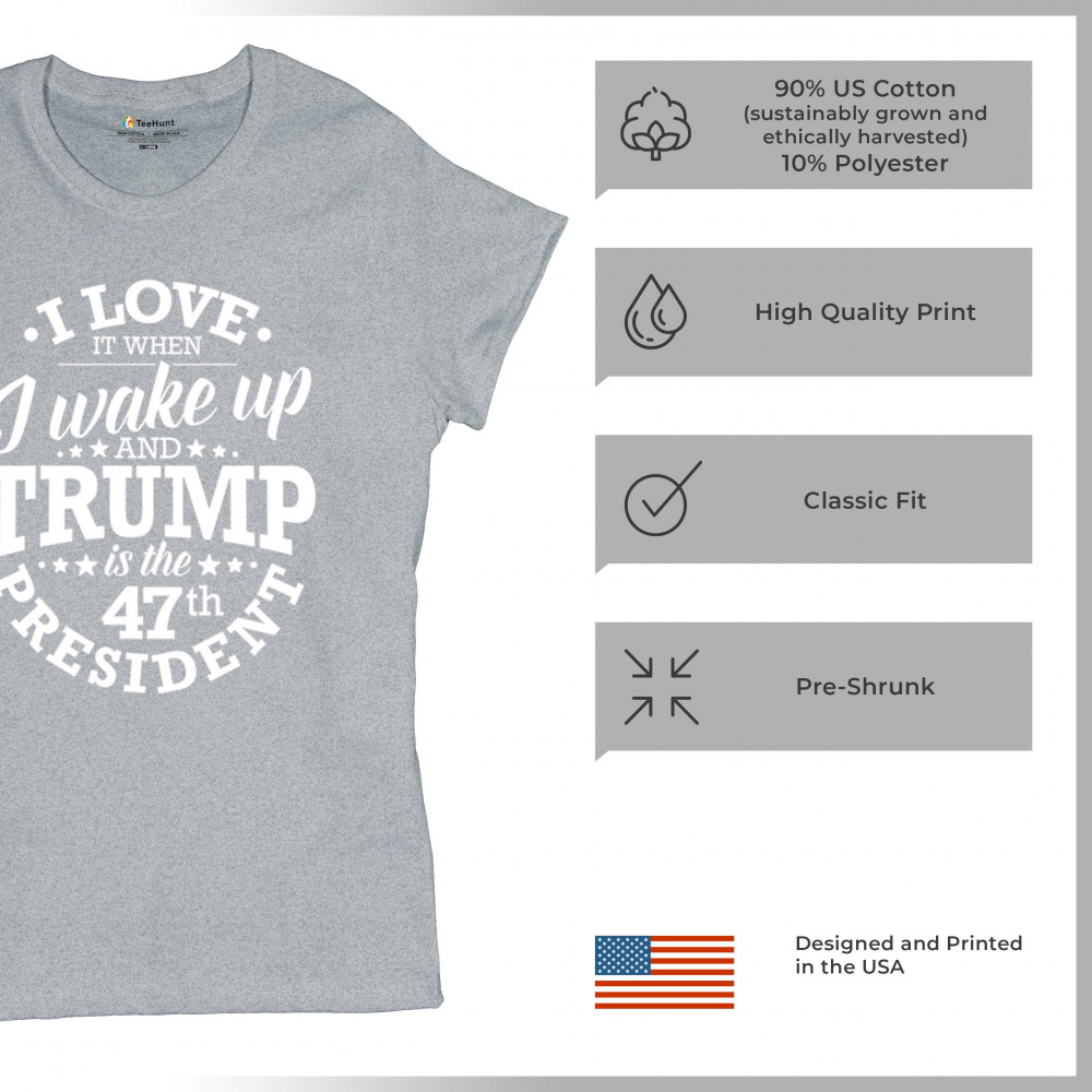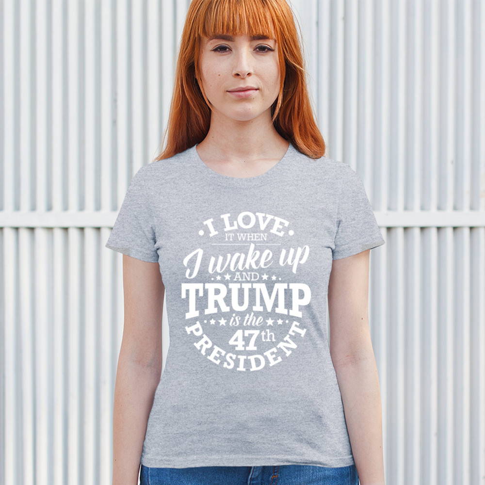 This "I Love It When I Wake Up and Trump is the 47th President" design is the ultimate expression of support for Donald J. Trump and his vision for America. Join the ranks of proud conservatives, Republicans, and America First advocates who are excited about the 47th President’s leadership. Celebrate the Red Wave and stay true to the values of freedom and strength that Trump embodies. Perfect for rallies, gatherings, and everyday patriotic wear.