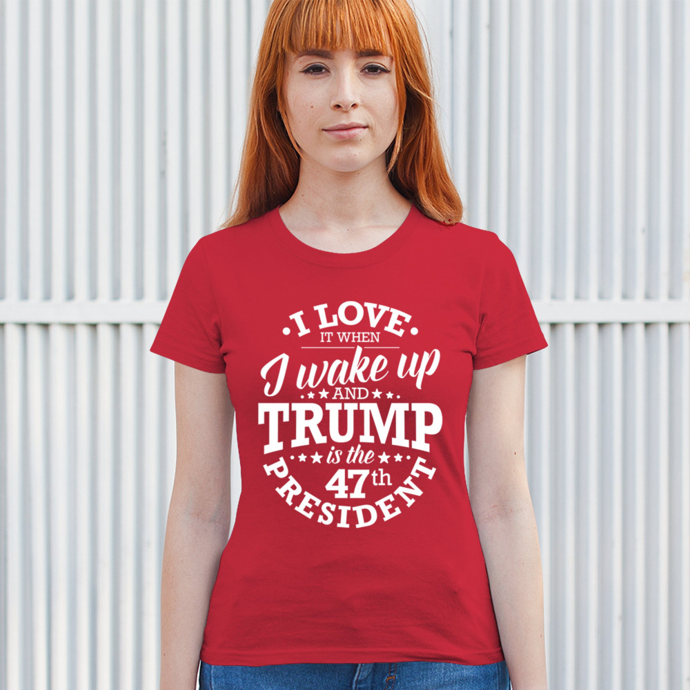 This "I Love It When I Wake Up and Trump is the 47th President" design is the ultimate expression of support for Donald J. Trump and his vision for America. Join the ranks of proud conservatives, Republicans, and America First advocates who are excited about the 47th President’s leadership. Celebrate the Red Wave and stay true to the values of freedom and strength that Trump embodies. Perfect for rallies, gatherings, and everyday patriotic wear.