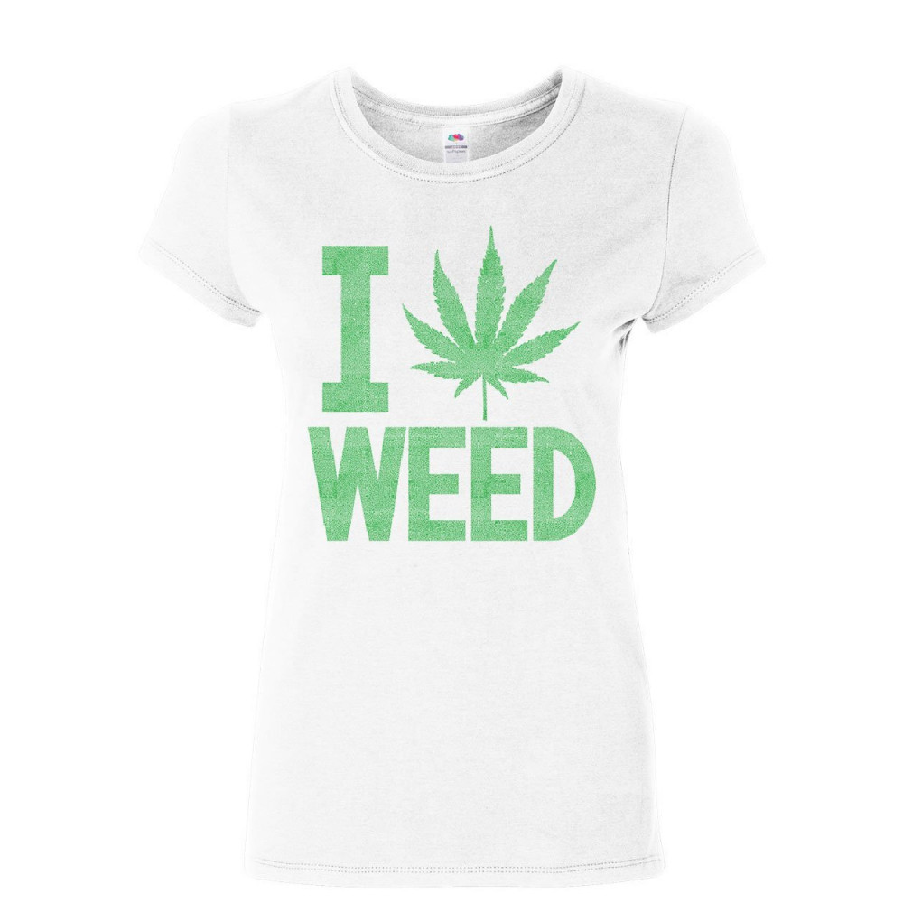 I LOVE WEED women's t-shirt smoking 420 pot reggae rasta marijuana kush shirt white