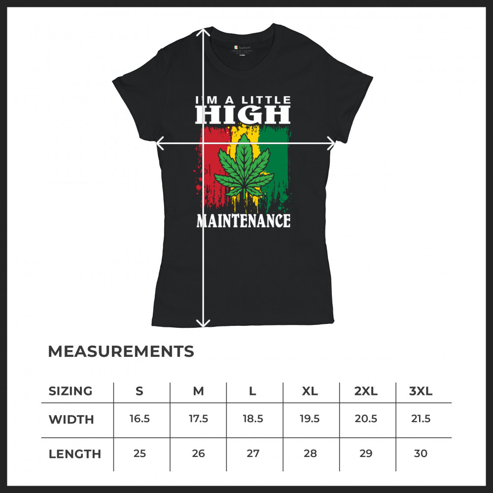 Express your unique style and sense of humor with our "I'm a Little High Maintenance" design. Featuring a bold cannabis leaf against a colorful, vibrant background, this design is perfect for those who love Mary Jane and appreciate a touch of trippy humor. Ideal for casual wear, relaxing with buds, or making a statement about cannabis culture. Whether you're chilling, blazing, or just want to add some fun to your wardrobe, this design is a must-have.