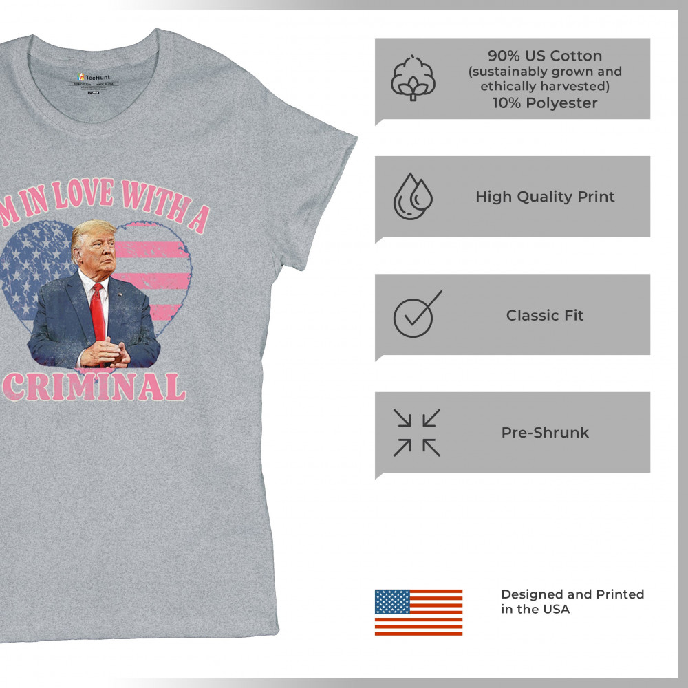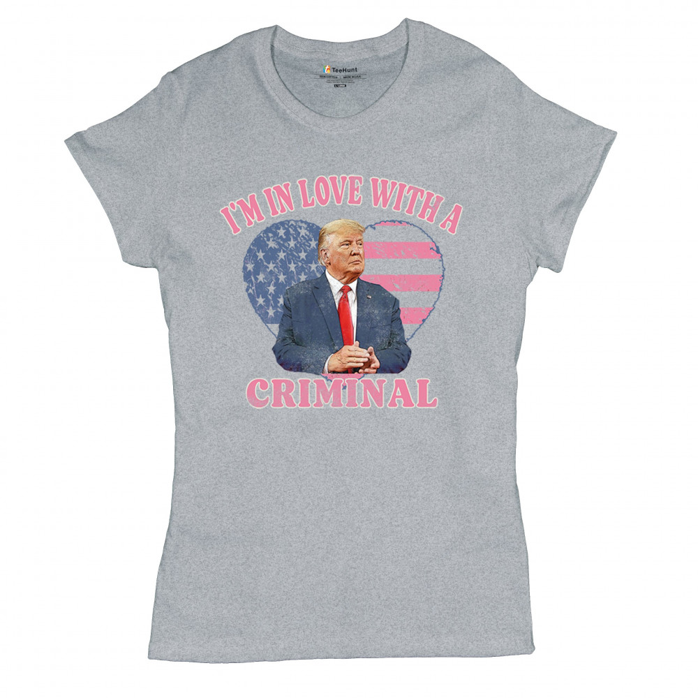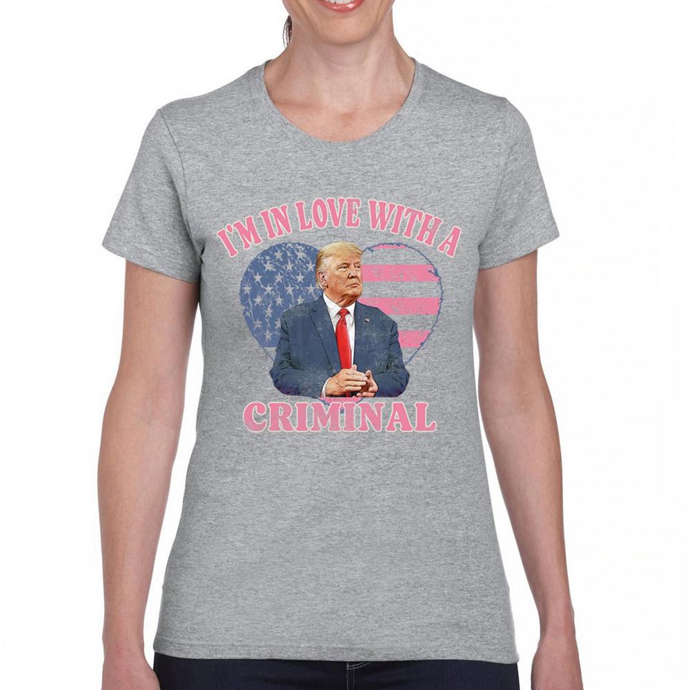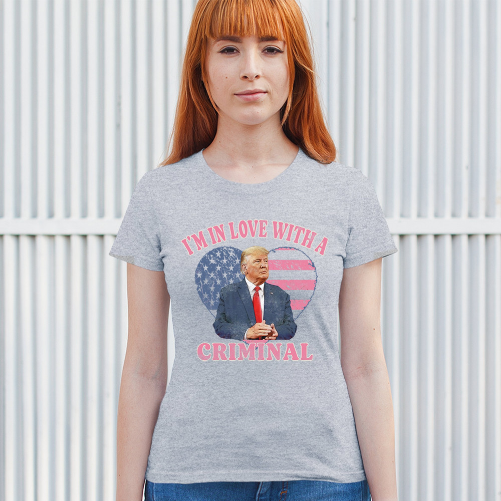 Support Trump with this "I'm in Love with a Criminal" design, embodying conservative values and America First ideals. Perfect for rallies and daily expression.