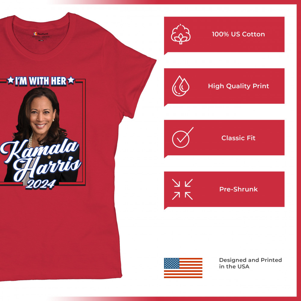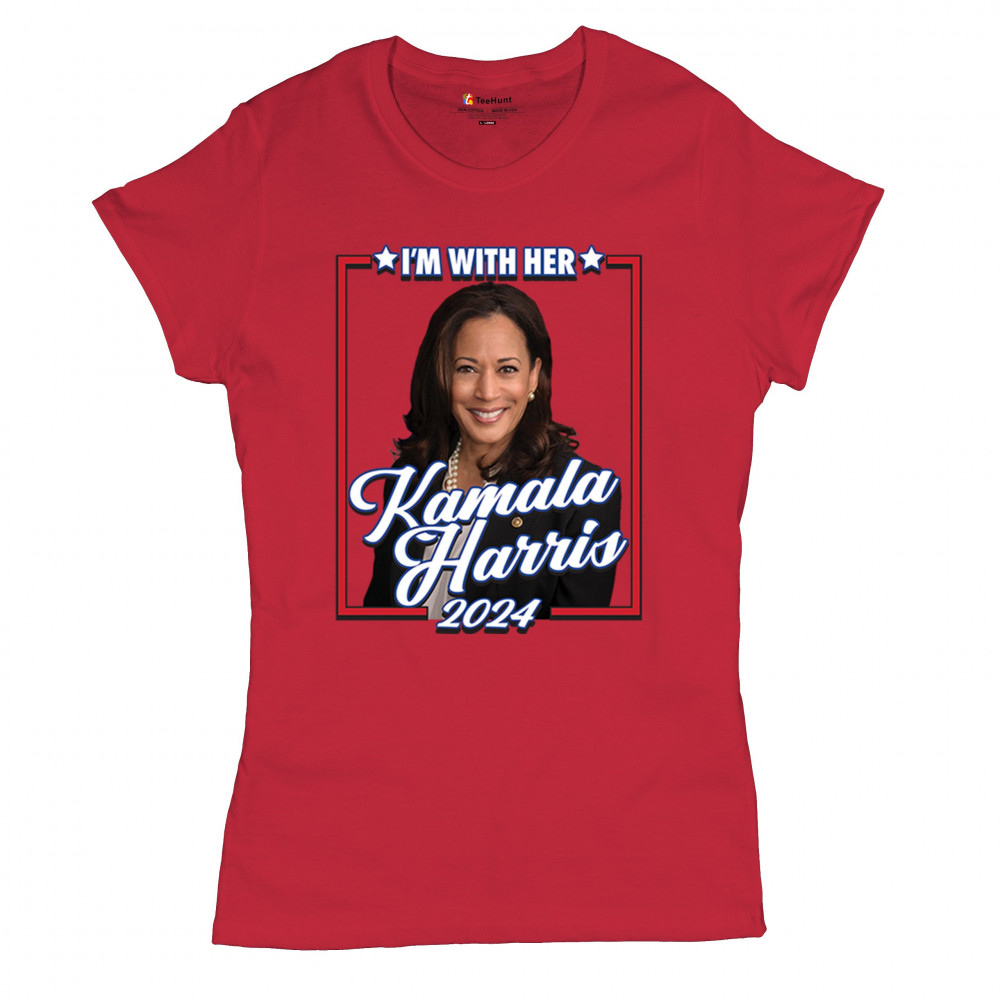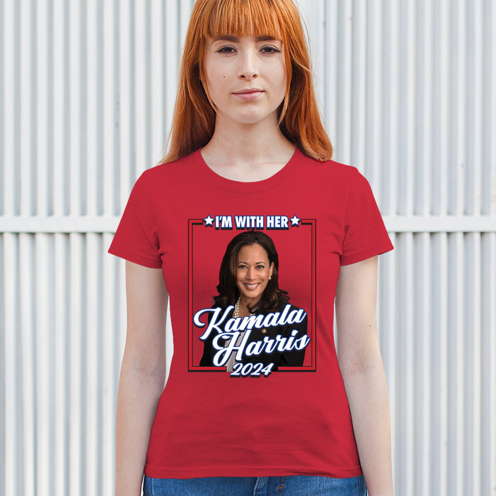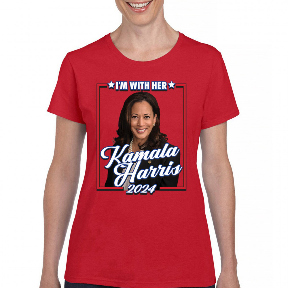 Stand with Kamala Harris in her 2024 presidential campaign with this vibrant design. Highlighting her commitment to progressive causes, this design is perfect for supporters of LGBTQ+ rights, women's rights, and social justice. Featuring the iconic "I'm With Her" slogan, it's a bold statement for anyone who believes in a brighter future. Wear it to rallies, events, or any day to show your support for Kamala Harris and her vision for America. A great addition to any supporter’s collection!