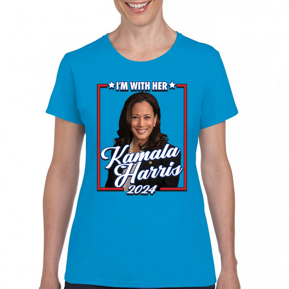 Stand with Kamala Harris in her 2024 presidential campaign with this vibrant design. Highlighting her commitment to progressive causes, this design is perfect for supporters of LGBTQ+ rights, women's rights, and social justice. Featuring the iconic "I'm With Her" slogan, it's a bold statement for anyone who believes in a brighter future. Wear it to rallies, events, or any day to show your support for Kamala Harris and her vision for America. A great addition to any supporter’s collection!
