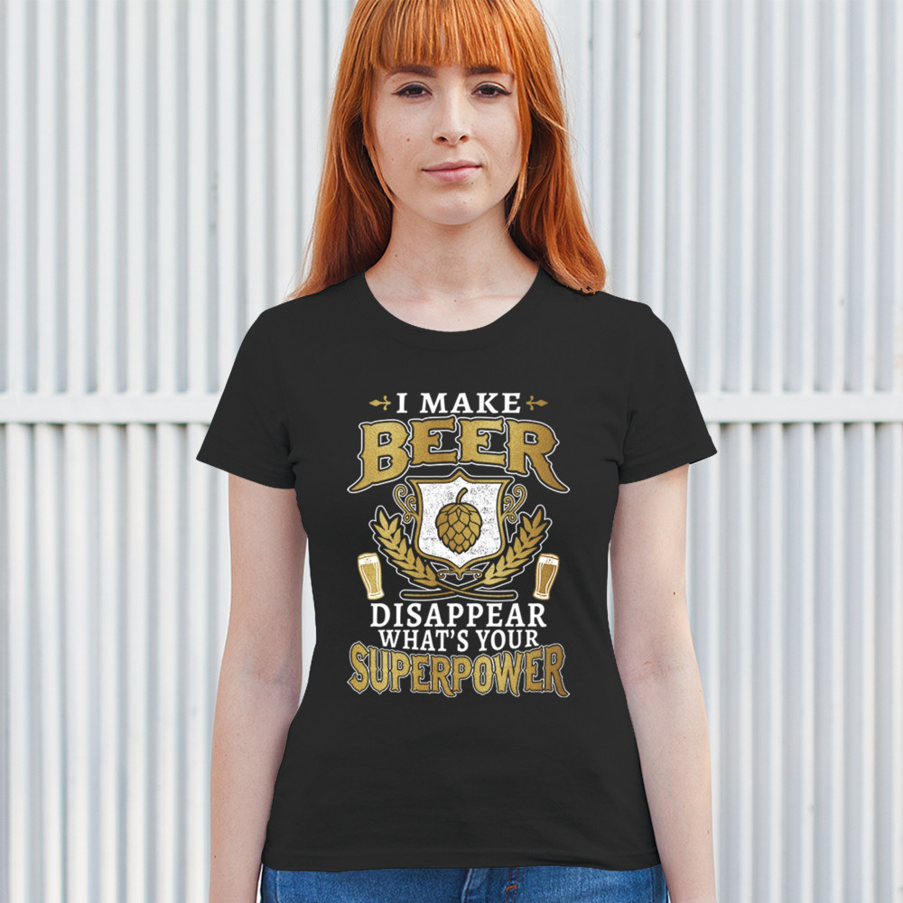 Show off your superpower with the humorous "I Make Beer Disappear, What's Your Superpower?" design. Perfect for beer lovers and casual outings.