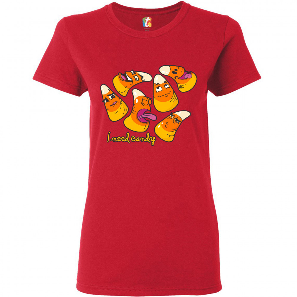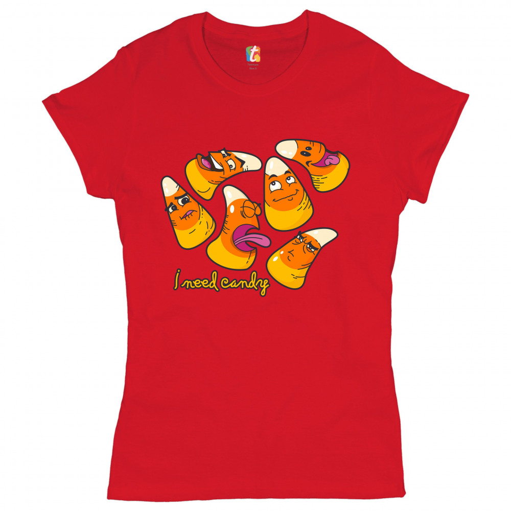 I NEED CANDY t-shirt happy halloween trick-or-treating funny women's tee red