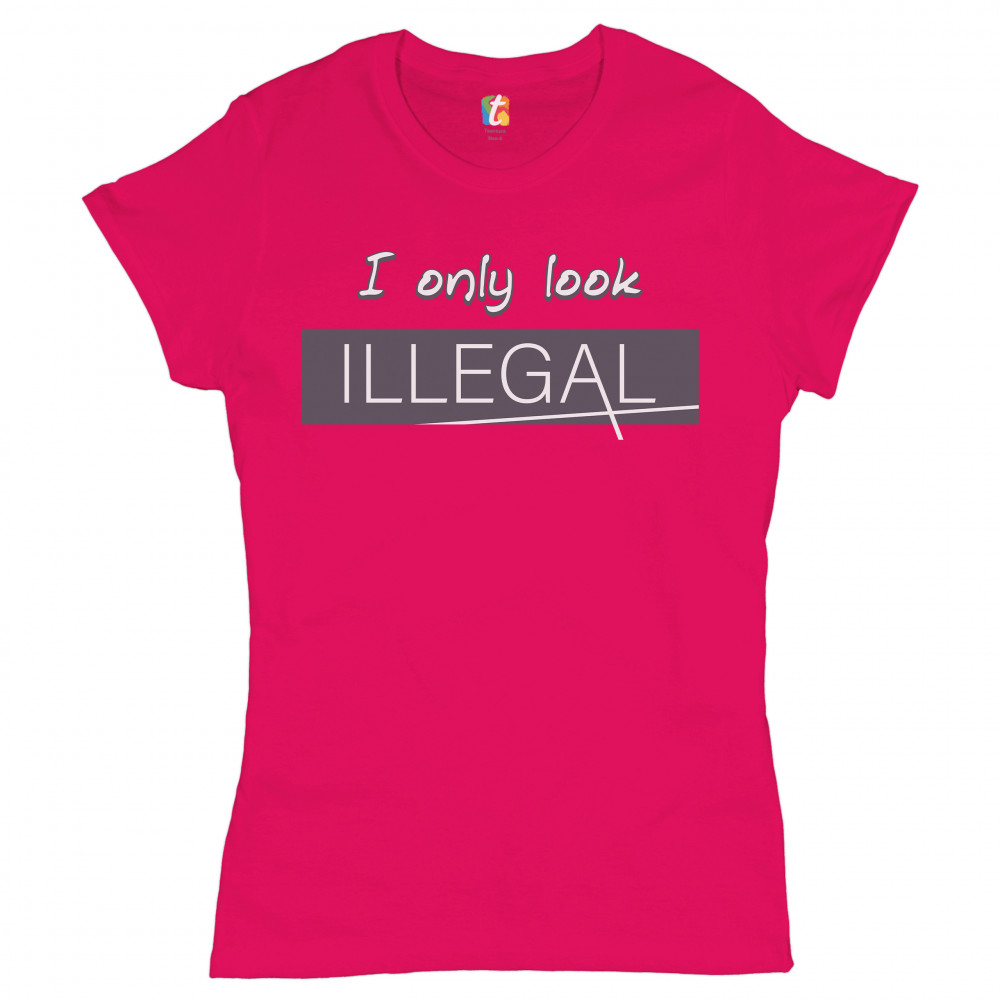 I ONLY LOOK ILLEGAL t-shirt stop racism pro immigration funny women's tee hot pink