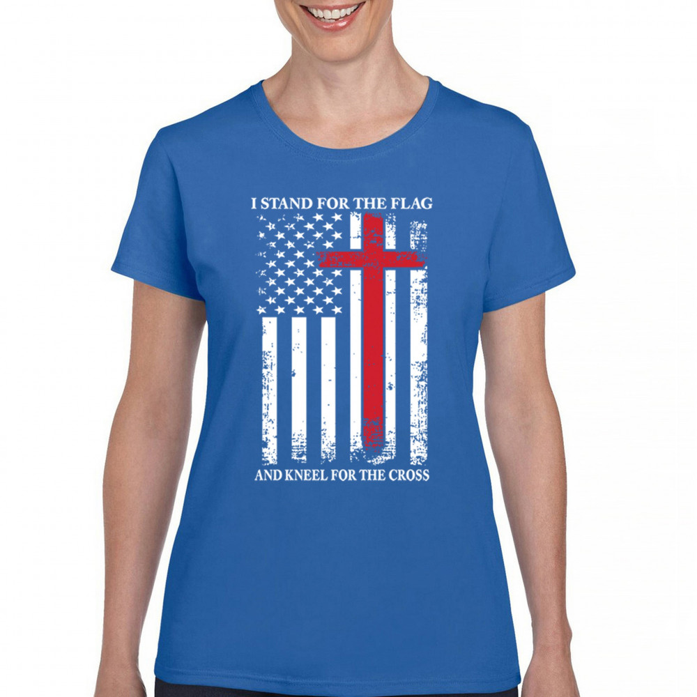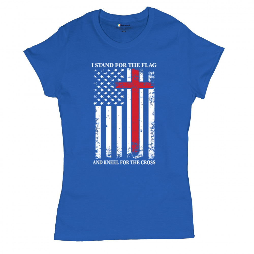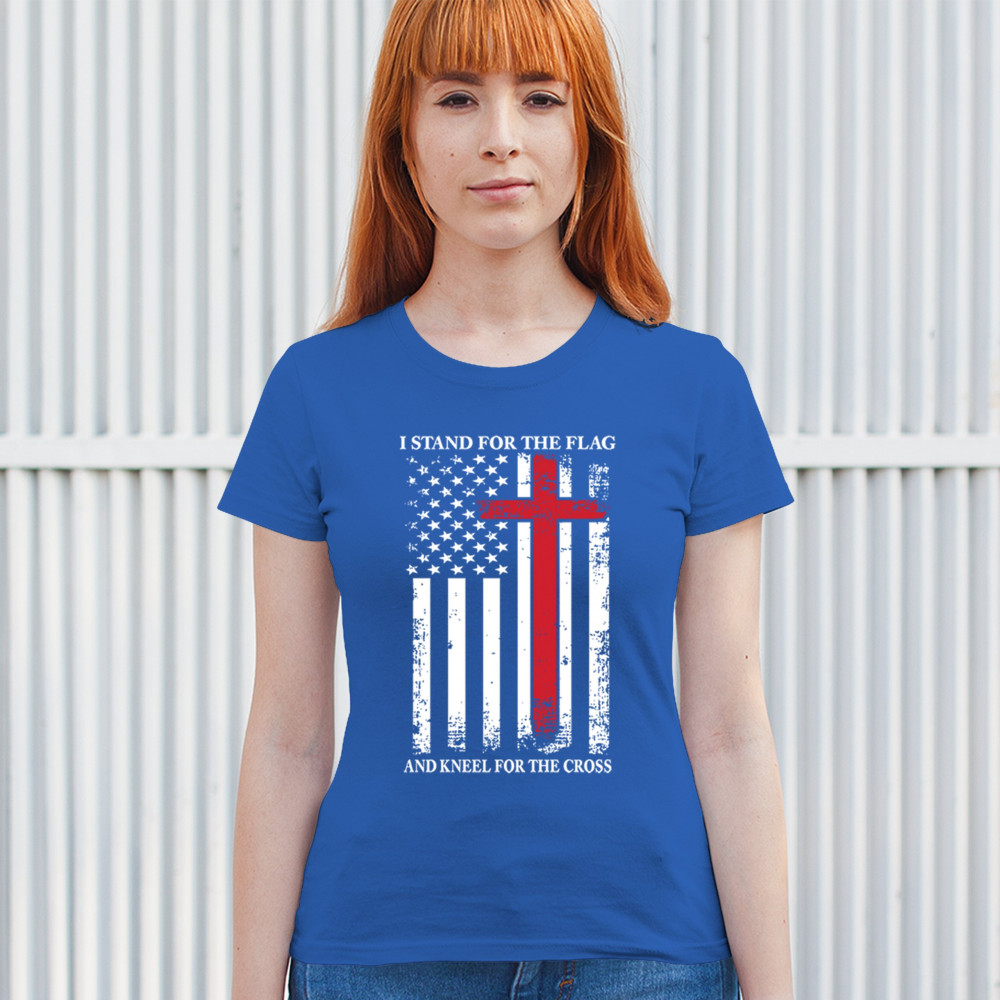 Wrap yourself in the spirit of patriotism and faith with our Stand for the Flag Kneel for the Cross design. This isn't just any Trump shirt—it's a symbol of unwavering support for American values. Featuring the iconic American flag intertwined with the Pu