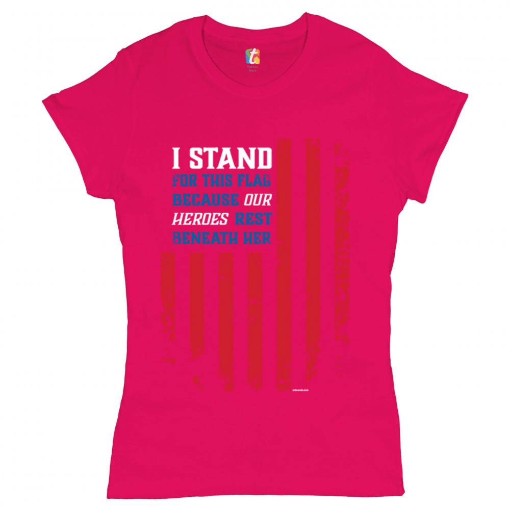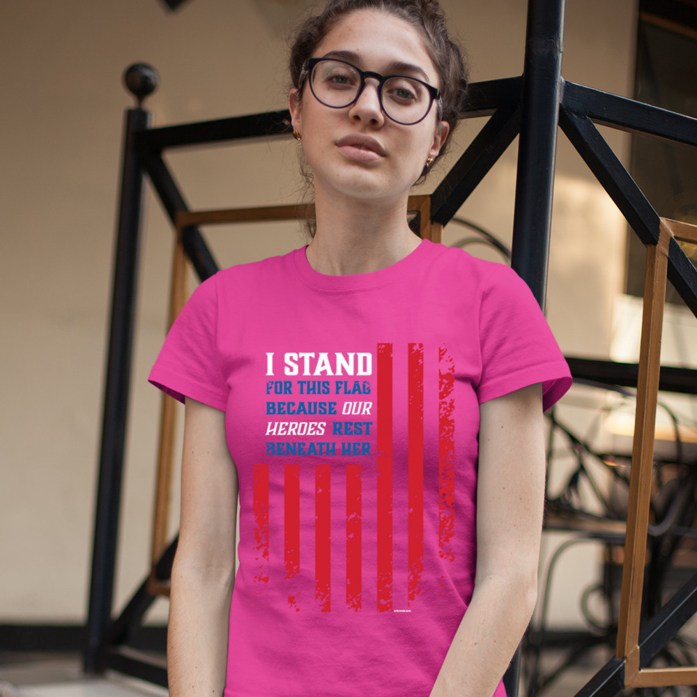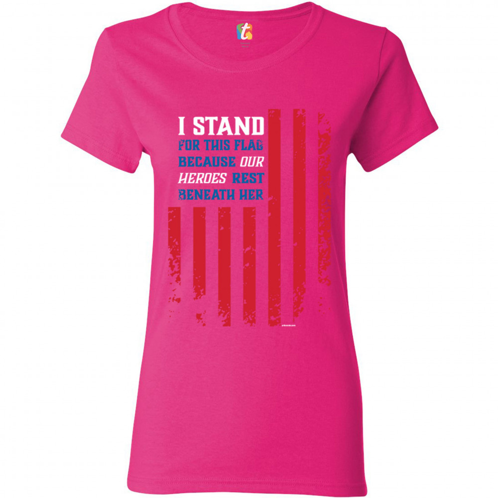 I STAND FOR THIS FLAG t-shirt patriotic veteran's day american flag women's tee pink