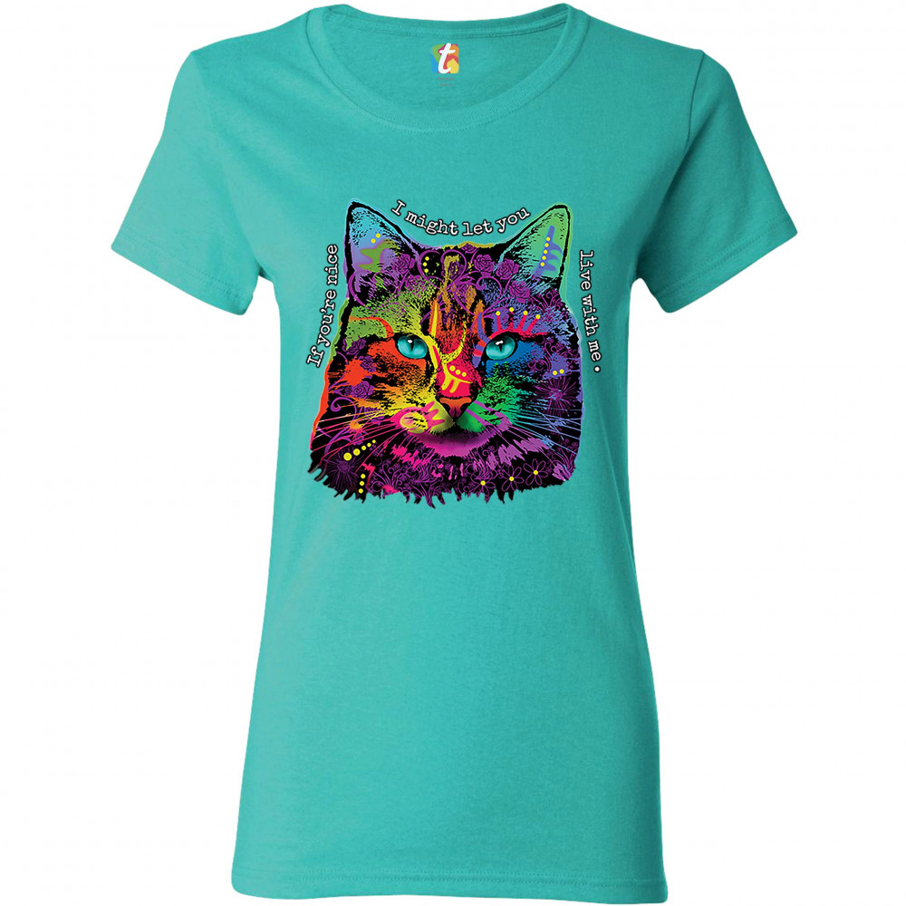 IF YOU'RE NICE I MIGHT LET YOU LIVE WITH ME t-shirt andy maxx cat women's tee light blue