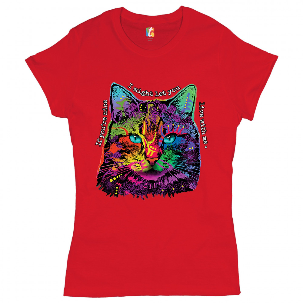 IF YOU'RE NICE I MIGHT LET YOU LIVE WITH ME t-shirt andy maxx cat women's tee red