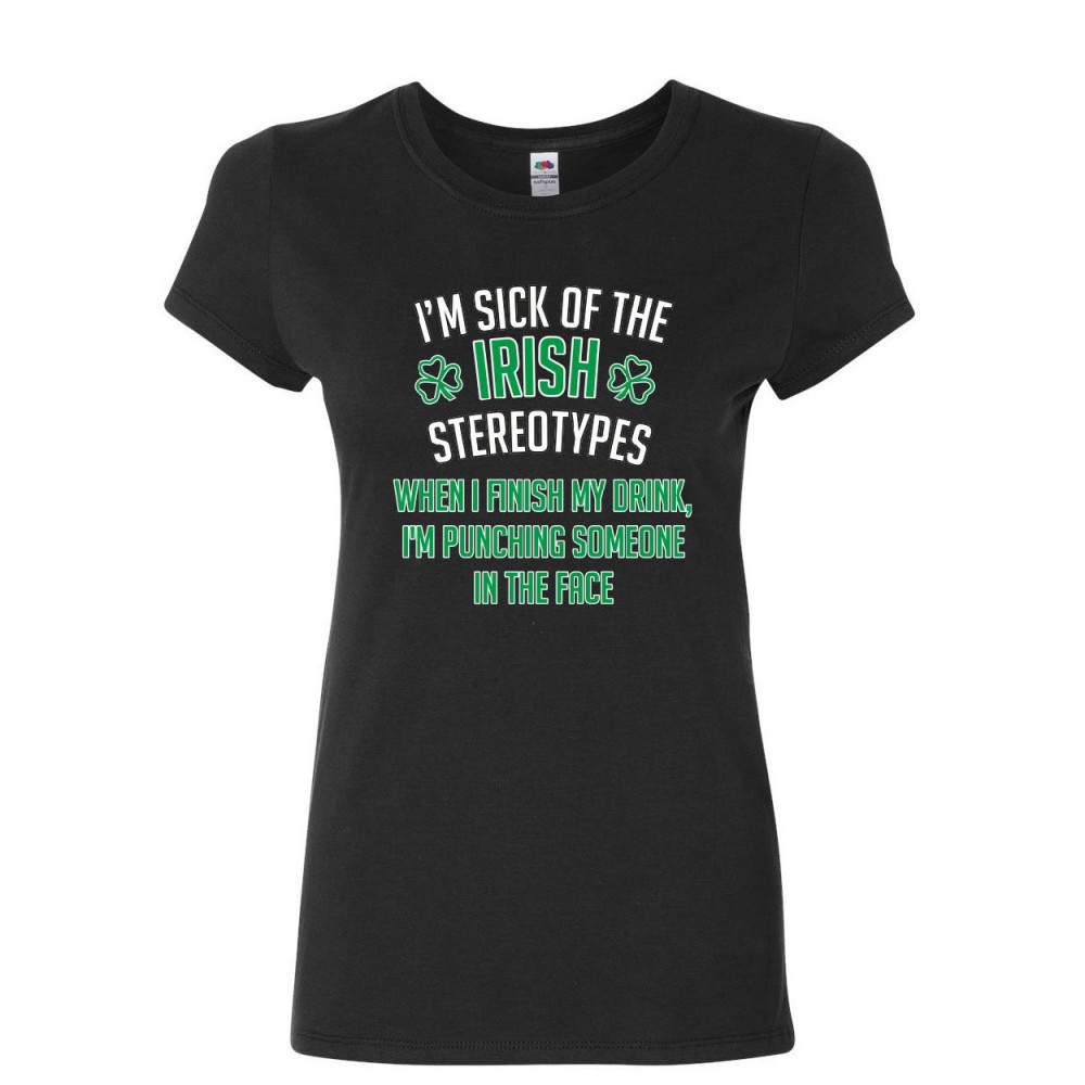 SICK OF THE IRISH STEREOTYPES i'm sick of irish stereotypes women's t-shirt st. patrick's day beer pub shirt black