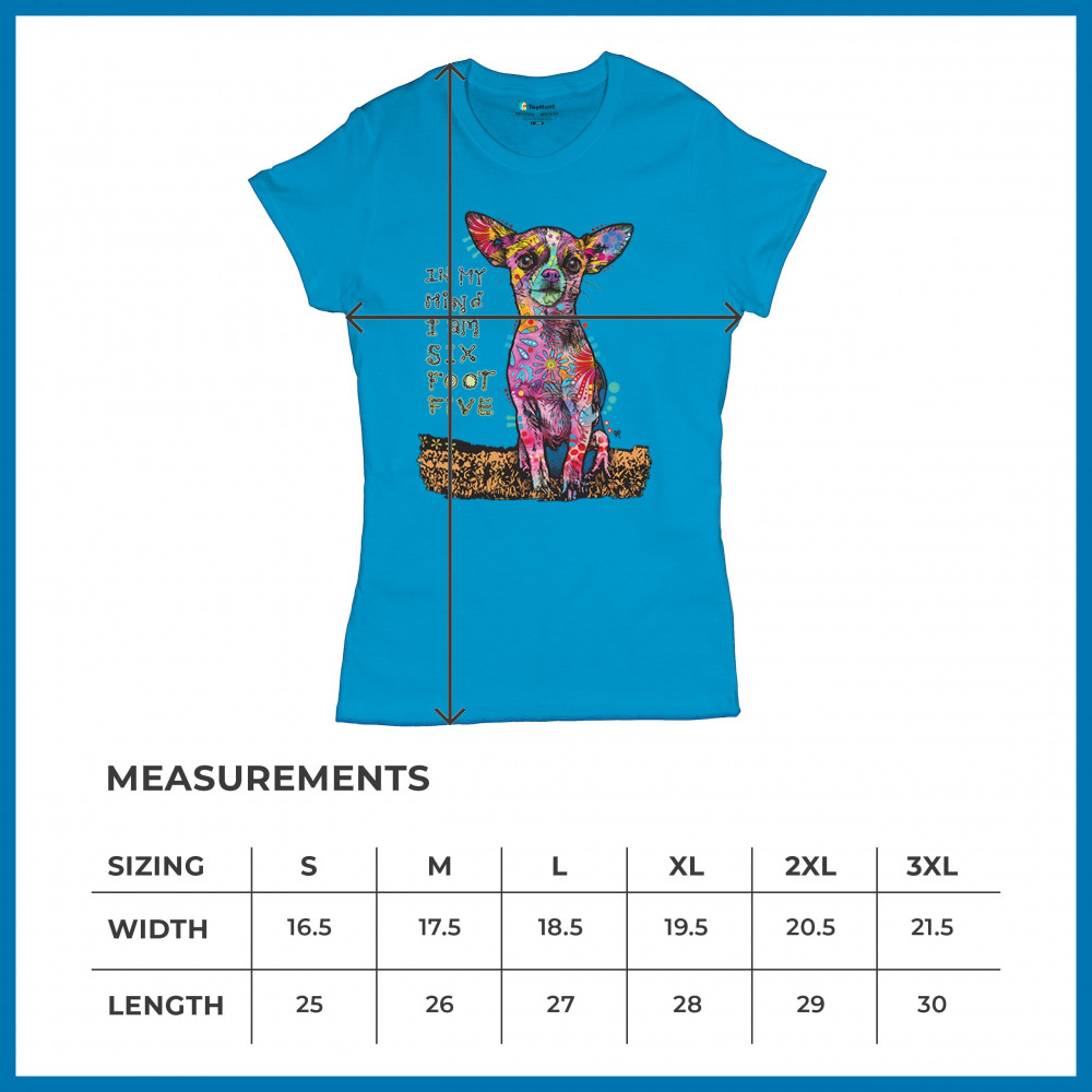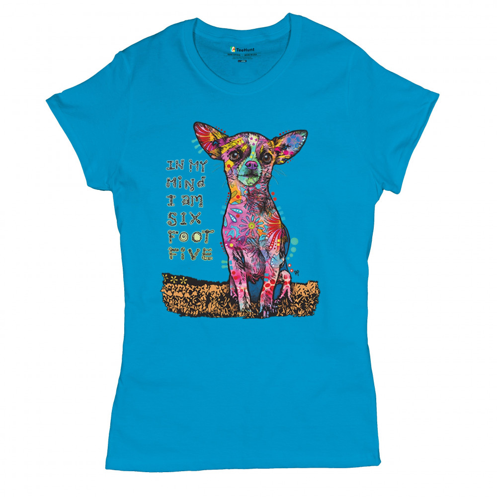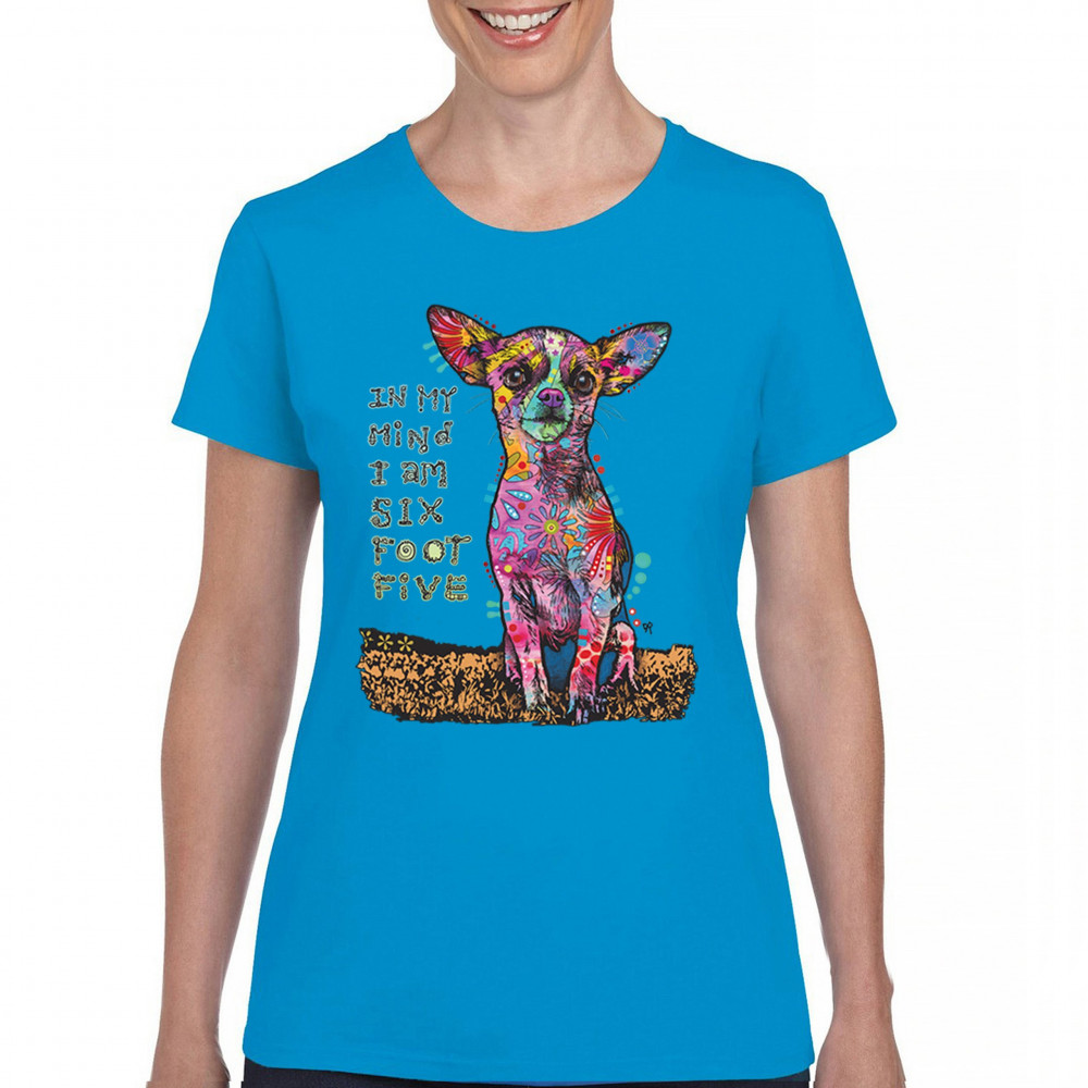 IN MY MIND I'M SIX FOOT FIVE t-shirt dean russo funny chihuahua women's tee light blue