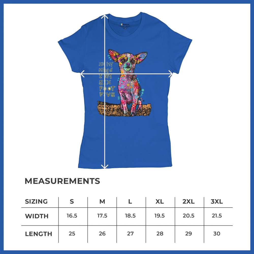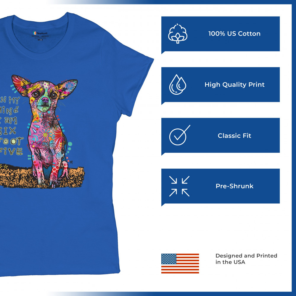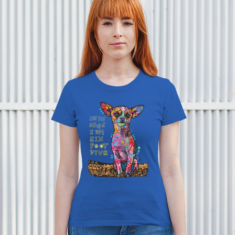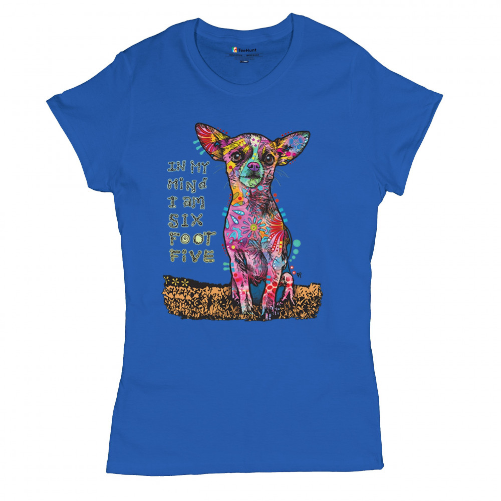 IN MY MIND I'M SIX FOOT FIVE t-shirt dean russo funny chihuahua women's tee royal blue