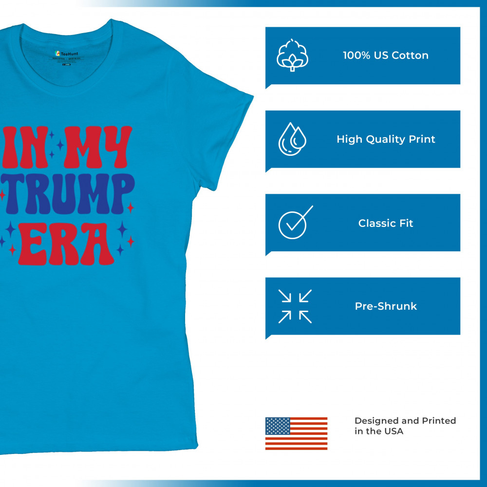 Declare your pride with this "In My Trump Era" design. Perfect for Trump supporters embracing America First, Republican values, and freedom.
