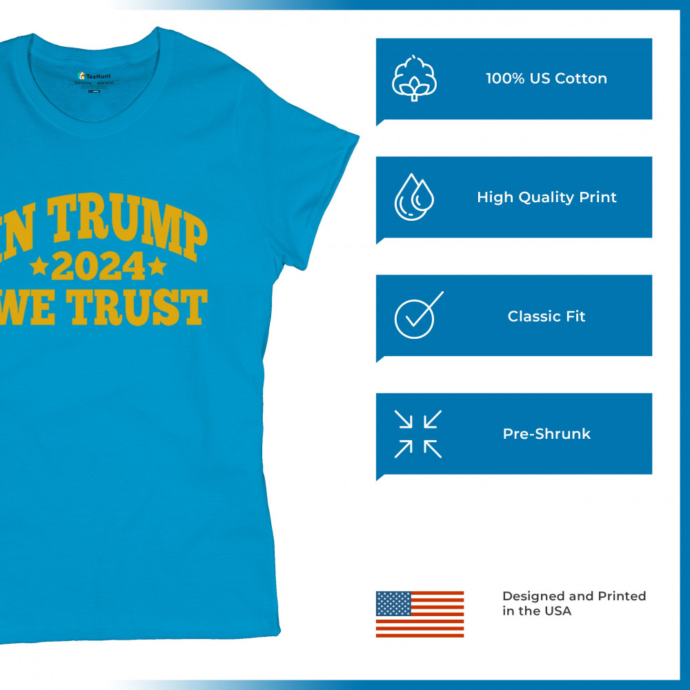 Show your unwavering trust in President Trump with our 'In Trump We Trust 2024' design. Perfect for proud supporters of America first. Join the movement.