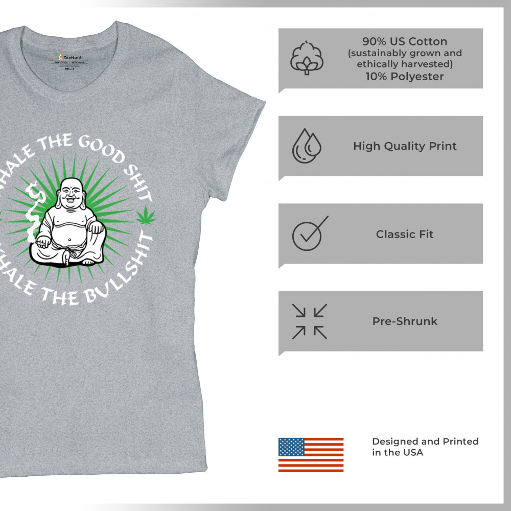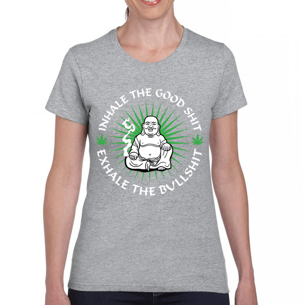 This hilarious and zen-inspired design features a happy Buddha with a joint, surrounded by cannabis leaves. “Inhale the Good Shit, Exhale the Bullshit†delivers chill stoner wisdom with a wink. Ideal for mindful marijuana lovers, 420 fans, or spiritual rebels with a sense of humor and a love for weed.